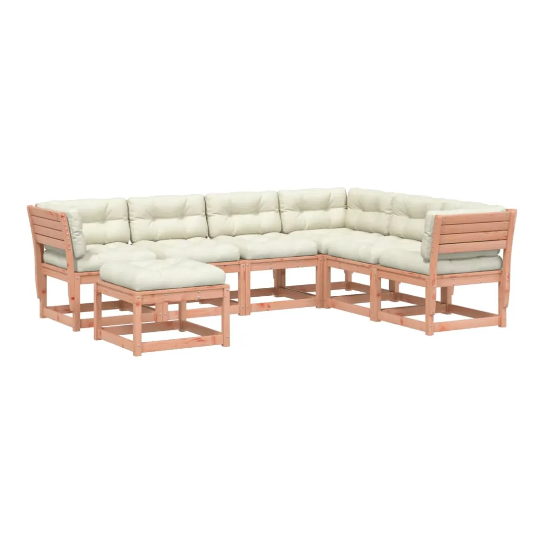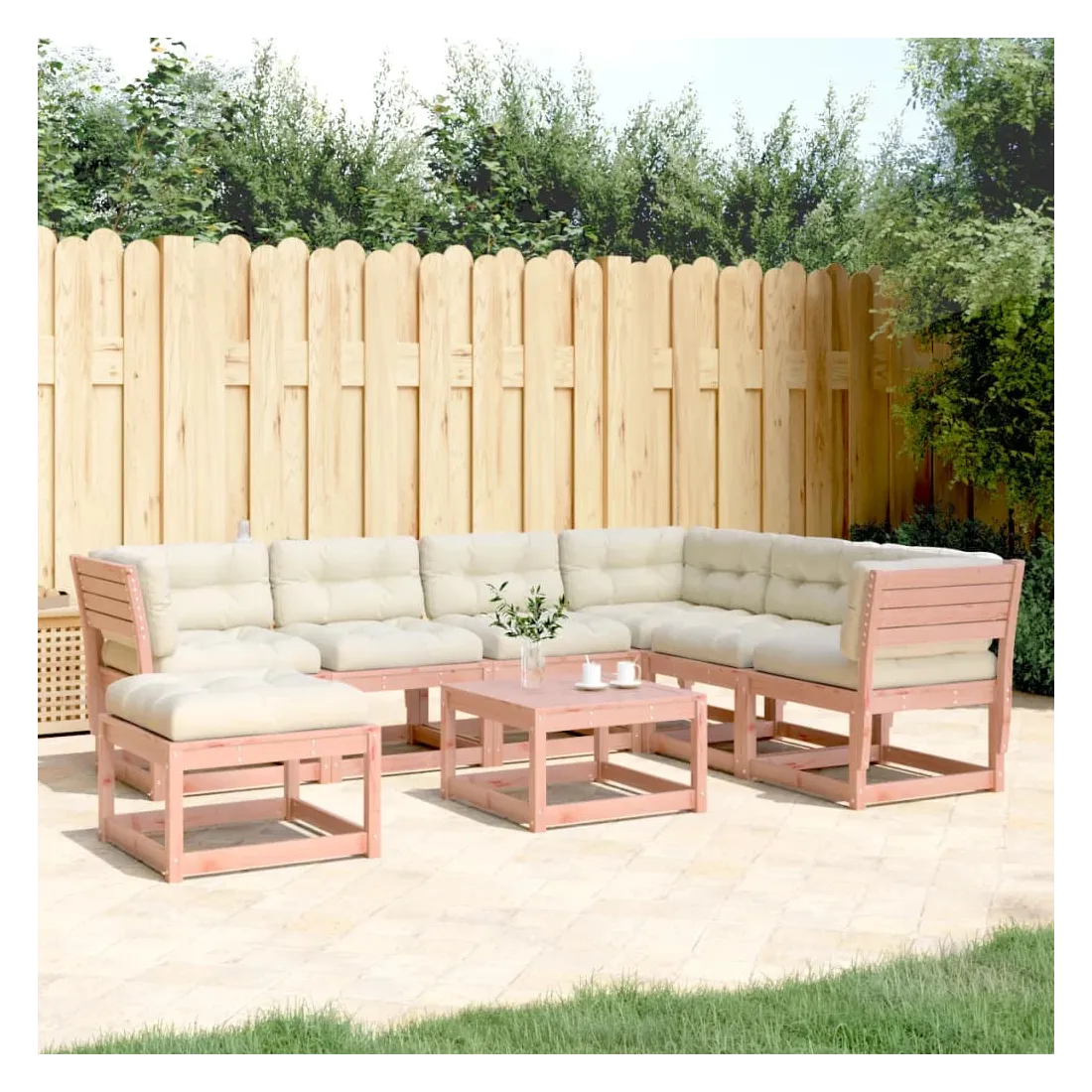 Cet ensemble de salon de jardin en bois a un design élégant et constitue un excellent choix pour vous détendre et profiter du jardin ou du patio. Bois de douglas massif : le bois de douglas massif est un bois très durable qui fonctionne bien pour l'extérieur. Le bois de douglas est également suffisamment solide pour être travaillé avec un minimum de soin, même sous l'influence des intempéries. Design à lattes : le design à lattes du meuble en bois empêche l'accumulation de l'eau, ce qui permet de garder le siège au sec et empêchant la pourriture indésirable. Expérience d'assise confortable : le dossier et l'accoudoir ajoutent un confort d'assise supplémentaire à l'ensemble de meubles de jardin. De plus, le coussin bien rembourré vous permet de vous asseoir confortablement. Conception modulaire : cet ensemble de meubles d'extérieur a une conception modulaire, ce qui le rend complètement flexible et facile à déplacer, afin que vous puissiez créer un agencement de meubles d'extérieur personnalisé. Bon à savoir :Pour que vos meubles d'extérieur restent beaux, nous vous recommandons de les protéger avec une housse imperméable.