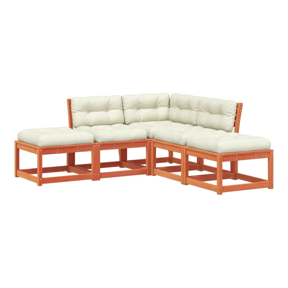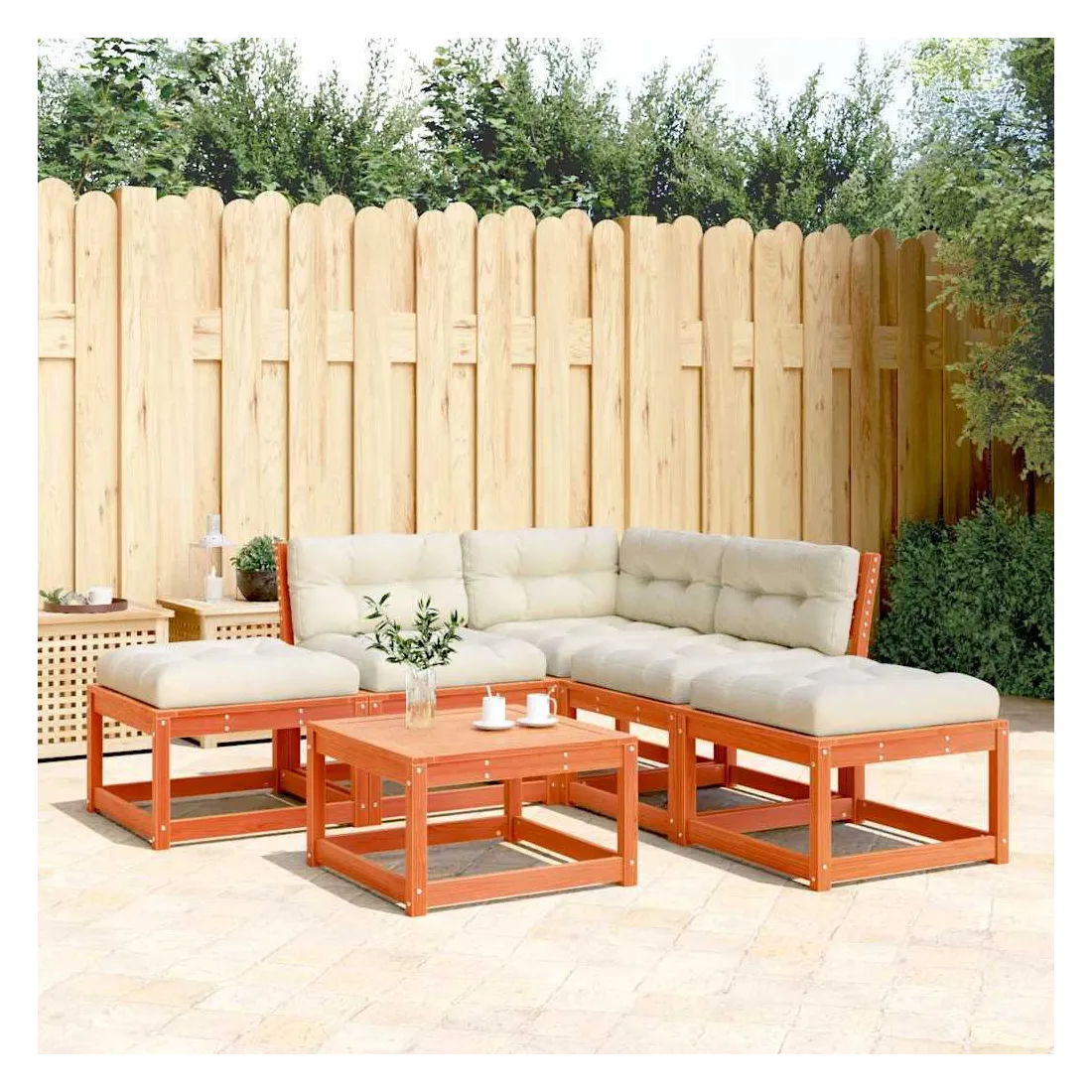 Cet ensemble de canapés de jardin est le complément parfait de votre arrière-cour, terrasse ou patio, offrant un espace confortable et accueillant pour discuter avec la famille et les amis ou simplement se détendre et profiter de l'extérieur. Bois de pin massif : le bois de pin massif est un matériau naturel magnifique. Le bois de pin a un grain droit et les nœuds donnent au matériau son aspect caractéristique et rustique.Expérience d'assise confortable : ce mobilier d'extérieur, doté de dossiers et de coussin épais rembourré, offre une expérience d'assise confortable.Conception à lattes : la conception à lattes du canapé d'extérieur empêche efficacement l'eau de s'accumuler, ce qui garantit que l'assise reste sèche et exempte de tout risque de pourriture.Conception modulaire : cet ensemble de meubles d'extérieur a une conception modulaire, ce qui le rend complètement flexible et facile à déplacer, afin que vous puissiez créer un agencement de meubles d'extérieur personnalisé. Bon à savoir :Pour que vos meubles d'extérieur restent beaux, nous vous recommandons de les protéger avec une housse imperméable.
