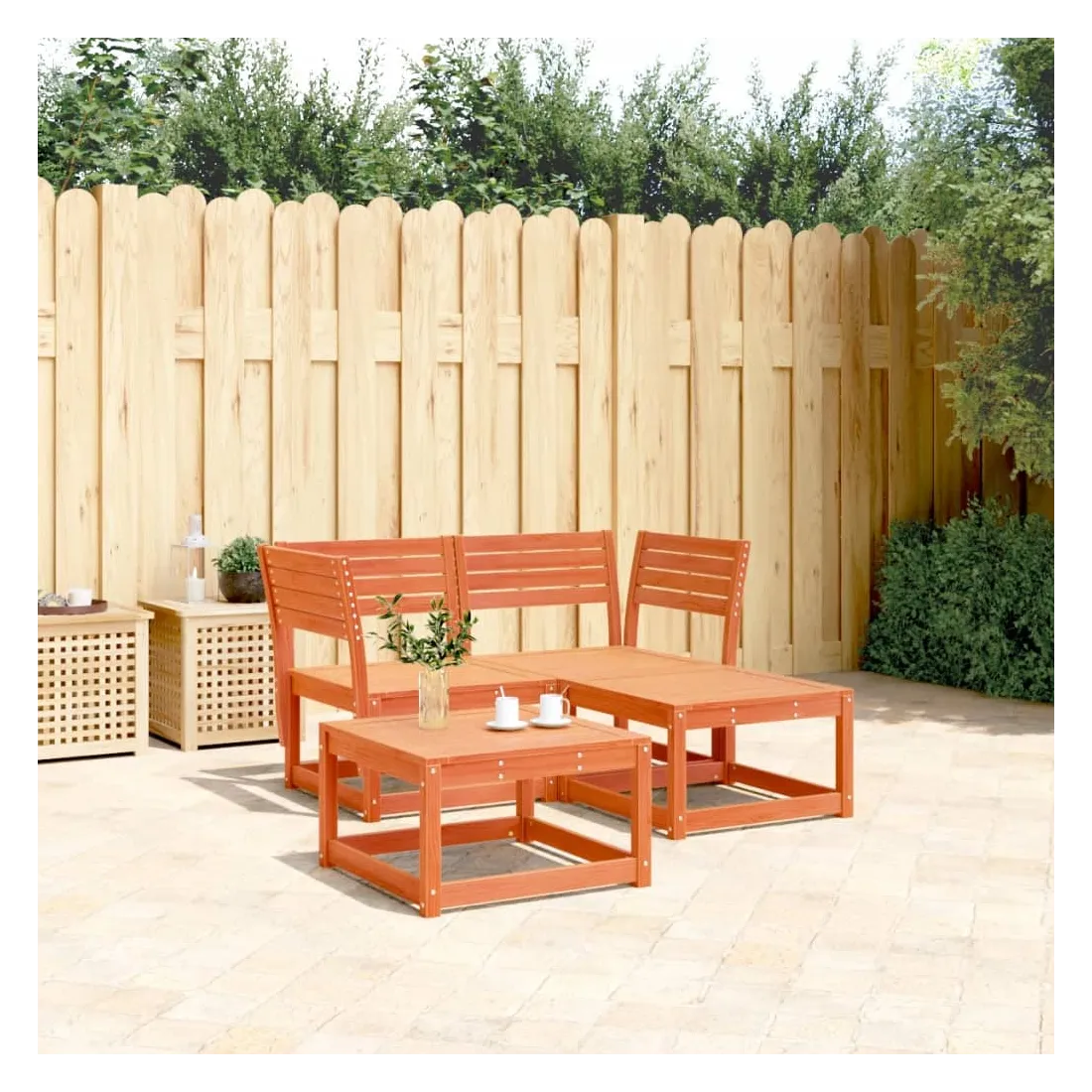 Cet ensemble de canapés de jardin est le complément parfait de votre arrière-cour, terrasse ou patio, offrant un espace confortable et accueillant pour discuter avec la famille et les amis ou simplement se détendre et profiter de l'extérieur. Bois de pin massif : le bois de pin massif est un matériau naturel magnifique. Le bois de pin a un grain droit et les nœuds donnent au matériau son aspect caractéristique et rustique.Expérience d'assise confortable : ce mobilier d'extérieur, doté de dossiers, offre une expérience d'assise confortable.Conception à lattes : la conception à lattes du canapé d'extérieur empêche efficacement l'eau de s'accumuler, ce qui garantit que l'assise reste sèche et exempte de tout risque de pourriture.Conception modulaire : cet ensemble de meubles d'extérieur a une conception modulaire, ce qui le rend complètement flexible et facile à déplacer, afin que vous puissiez créer un agencement de meubles d'extérieur personnalisé. Bon à savoir :Pour que vos meubles d'extérieur restent beaux, nous vous recommandons de les protéger avec une housse imperméable.