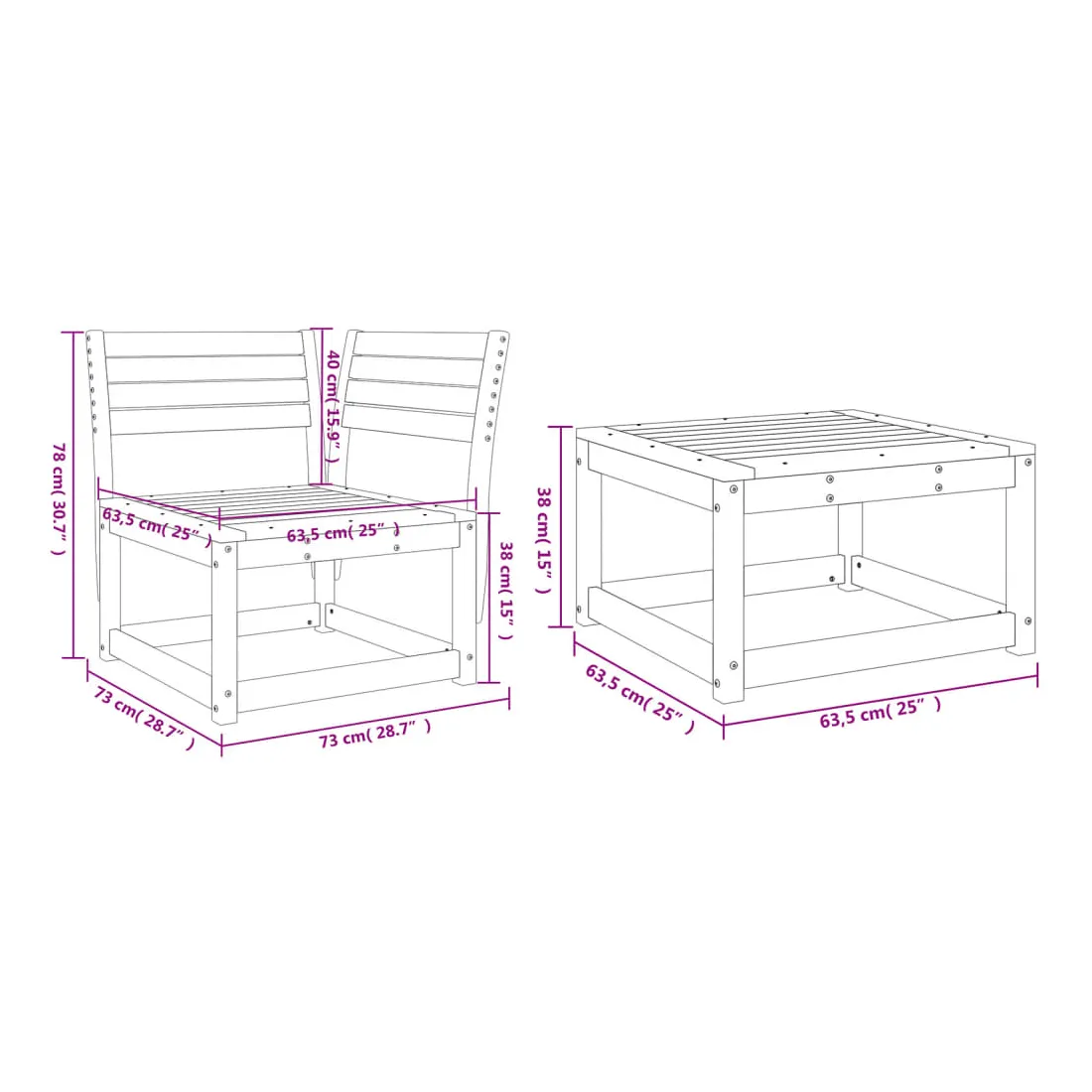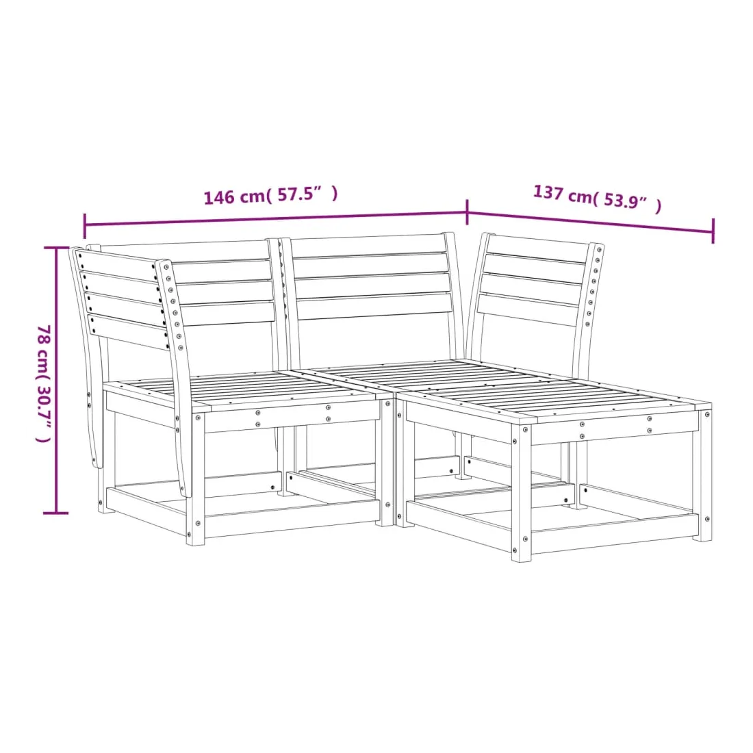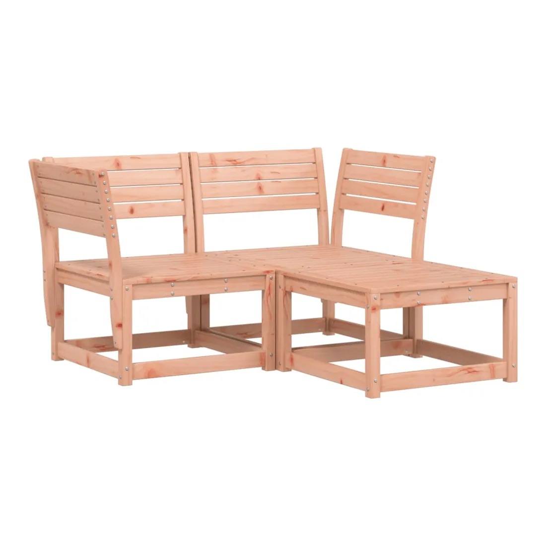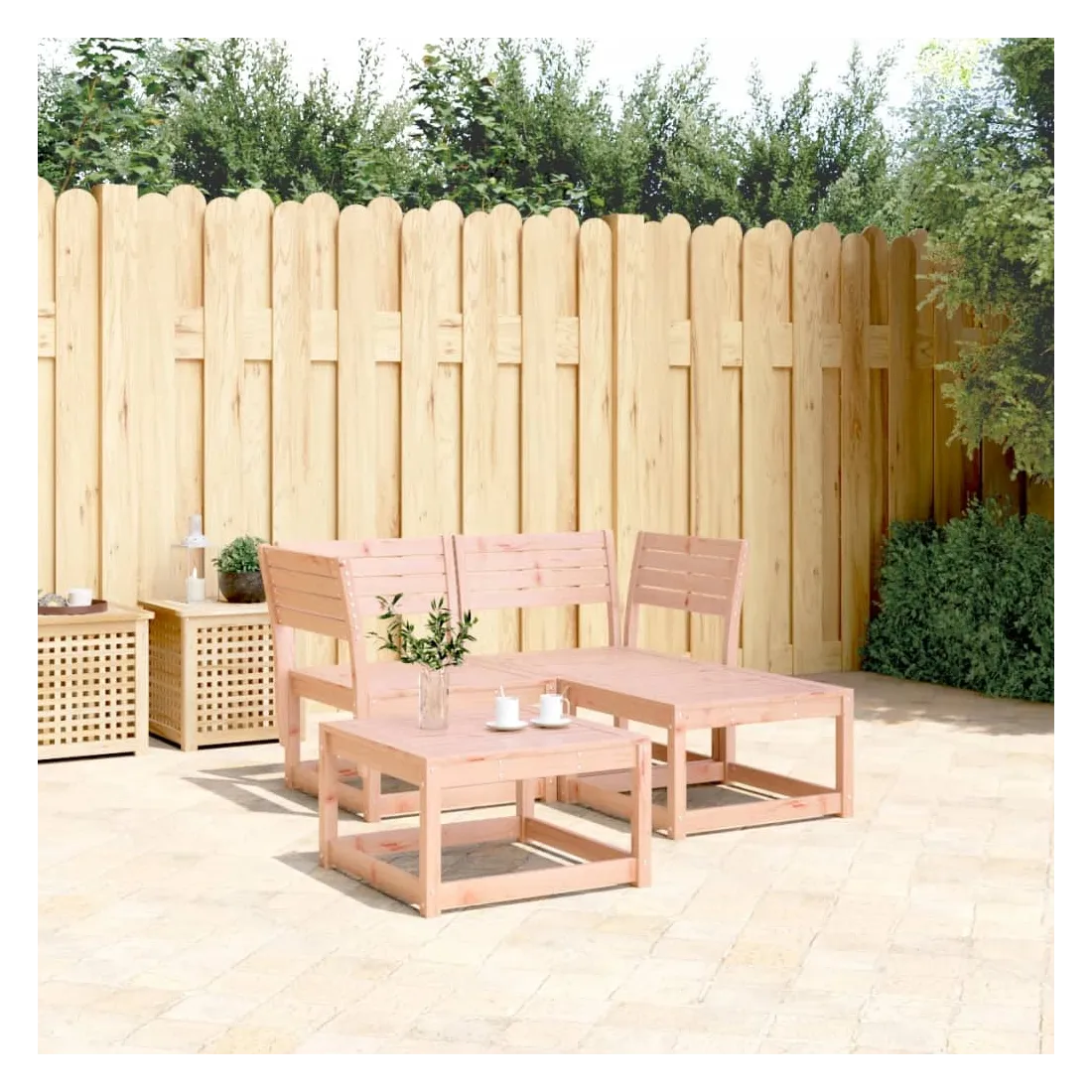 Cet ensemble de canapés de jardin est le complément parfait de votre arrière-cour, terrasse ou patio, offrant un espace confortable et accueillant pour discuter avec la famille et les amis ou simplement se détendre et profiter de l'extérieur. Bois de douglas massif : le bois de douglas massif est un bois très durable qui fonctionne bien pour l'extérieur. Le bois de douglas est également suffisamment solide pour être travaillé avec un minimum de soin, même sous l'influence des intempéries.Expérience d'assise confortable : ce mobilier d'extérieur, doté de dossiers, offre une expérience d'assise confortable.Conception à lattes : la conception à lattes du canapé d'extérieur empêche efficacement l'eau de s'accumuler, ce qui garantit que l'assise reste sèche et exempte de tout risque de pourriture.Conception modulaire : cet ensemble de meubles d'extérieur a une conception modulaire, ce qui le rend complètement flexible et facile à déplacer, afin que vous puissiez créer un agencement de meubles d'extérieur personnalisé. Bon à savoir :Pour que vos meubles d'extérieur restent beaux, nous vous recommandons de les protéger avec une housse imperméable.