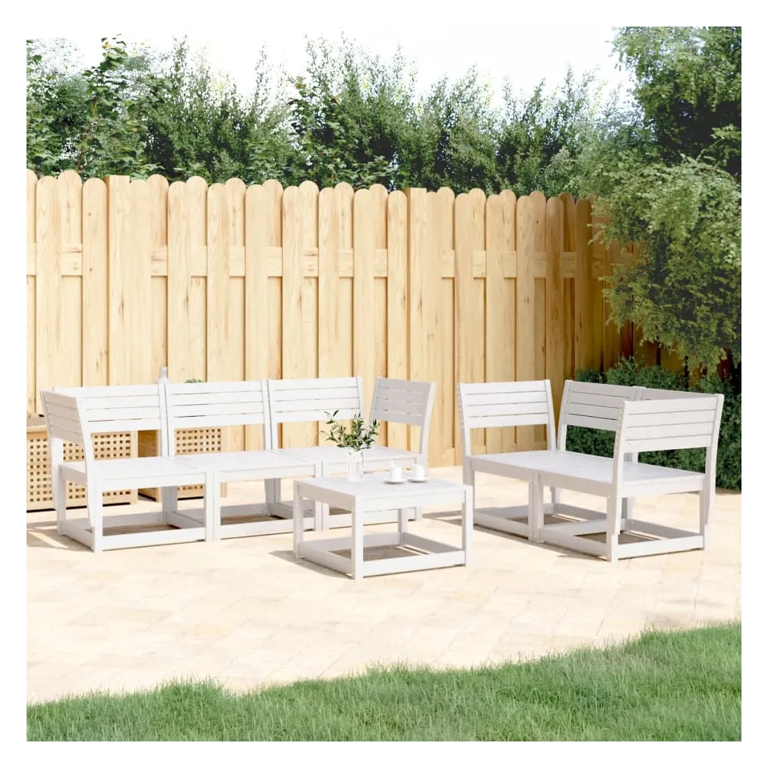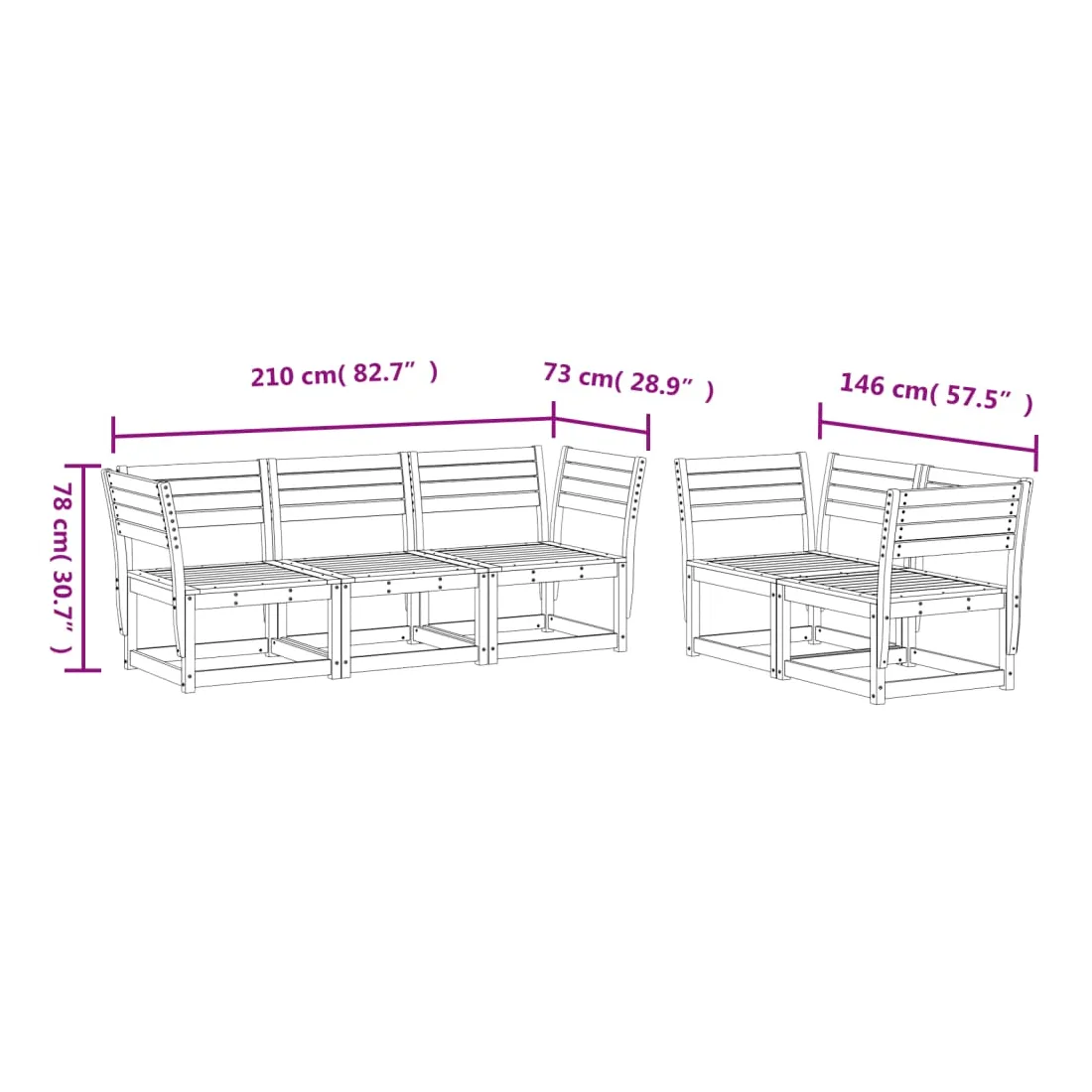 Cet ensemble de canapés de jardin est le complément parfait de votre arrière-cour, terrasse ou patio, offrant un espace confortable et accueillant pour discuter avec la famille et les amis ou simplement se détendre et profiter de l'extérieur. Bois de pin massif : le bois de pin massif est un matériau naturel magnifique. Le bois de pin a un grain droit et les nœuds donnent au matériau son aspect caractéristique et rustique.Expérience d'assise confortable : ce mobilier d'extérieur, doté de dossiers, offre une expérience d'assise confortable.Conception à lattes : la conception à lattes du canapé d'extérieur empêche efficacement l'eau de s'accumuler, ce qui garantit que l'assise reste sèche et exempte de tout risque de pourriture.Conception modulaire : cet ensemble de meubles d'extérieur a une conception modulaire, ce qui le rend complètement flexible et facile à déplacer, afin que vous puissiez créer un agencement de meubles d'extérieur personnalisé. Bon à savoir :Pour que vos meubles d'extérieur restent beaux, nous vous recommandons de les protéger avec une housse imperméable.