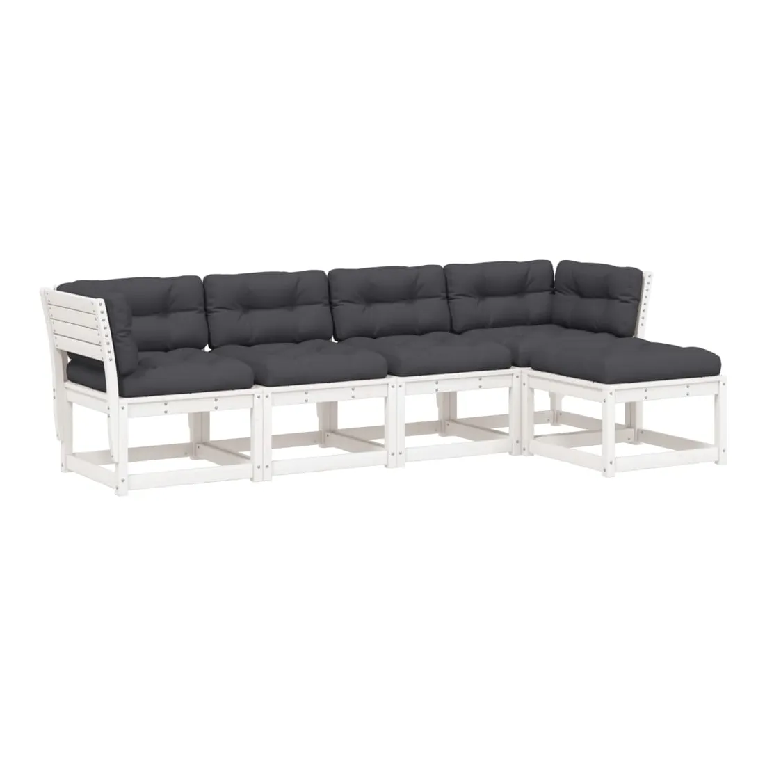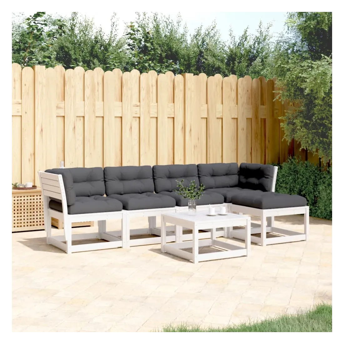 Cet ensemble de canapés de jardin est le complément parfait de votre arrière-cour, terrasse ou patio, offrant un espace confortable et accueillant pour discuter avec la famille et les amis ou simplement se détendre et profiter de l'extérieur. Bois de pin massif : le bois de pin massif est un matériau naturel magnifique. Le bois de pin a un grain droit et les nœuds donnent au matériau son aspect caractéristique et rustique.Expérience d'assise confortable : ce mobilier d'extérieur, doté de dossiers et de coussin épais rembourré, offre une expérience d'assise confortable.Conception à lattes : la conception à lattes du canapé d'extérieur empêche efficacement l'eau de s'accumuler, ce qui garantit que l'assise reste sèche et exempte de tout risque de pourriture.Conception modulaire : cet ensemble de meubles d'extérieur a une conception modulaire, ce qui le rend complètement flexible et facile à déplacer, afin que vous puissiez créer un agencement de meubles d'extérieur personnalisé. Bon à savoir :Pour que vos meubles d'extérieur restent beaux, nous vous recommandons de les protéger avec une housse imperméable.