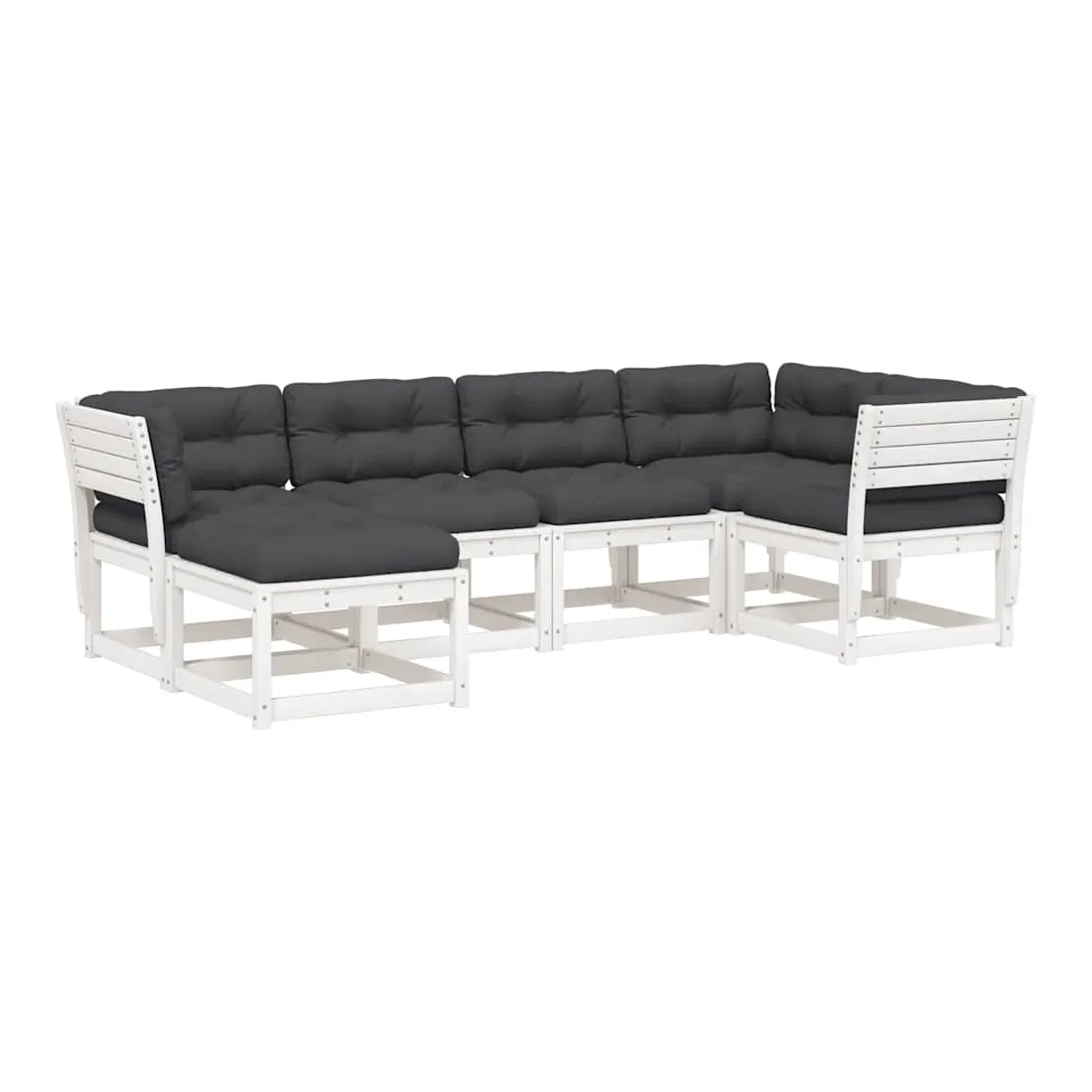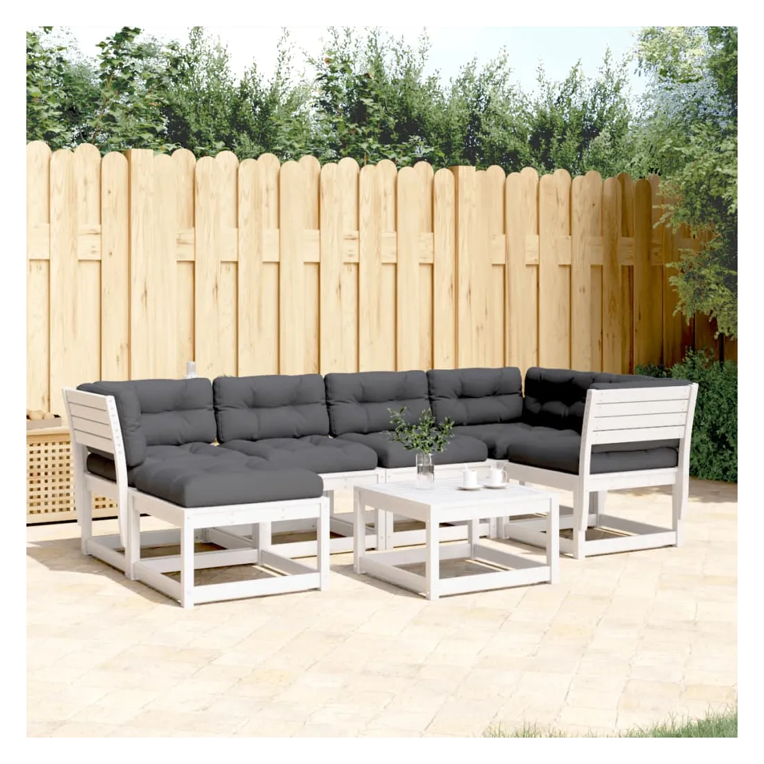 Cet ensemble de canapés de jardin est le complément parfait de votre arrière-cour, terrasse ou patio, offrant un espace confortable et accueillant pour discuter avec la famille et les amis ou simplement se détendre et profiter de l'extérieur. Bois de pin massif : le bois de pin massif est un matériau naturel magnifique. Le bois de pin a un grain droit et les nœuds donnent au matériau son aspect caractéristique et rustique.Expérience d'assise confortable : ce mobilier d'extérieur, doté de dossiers et de coussin épais rembourré, offre une expérience d'assise confortable.Conception à lattes : la conception à lattes du canapé d'extérieur empêche efficacement l'eau de s'accumuler, ce qui garantit que l'assise reste sèche et exempte de tout risque de pourriture.Conception modulaire : cet ensemble de meubles d'extérieur a une conception modulaire, ce qui le rend complètement flexible et facile à déplacer, afin que vous puissiez créer un agencement de meubles d'extérieur personnalisé. Bon à savoir :Pour que vos meubles d'extérieur restent beaux, nous vous recommandons de les protéger avec une housse imperméable.