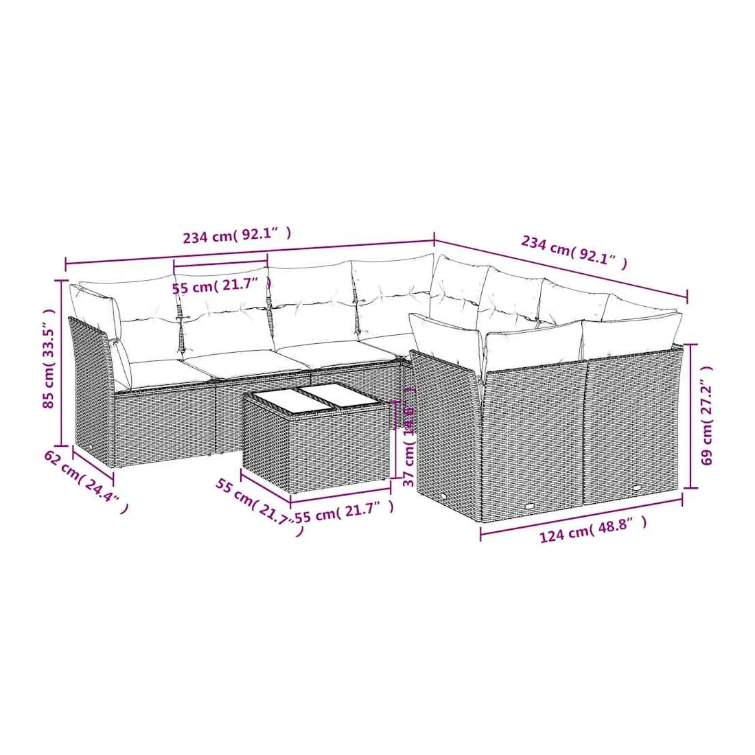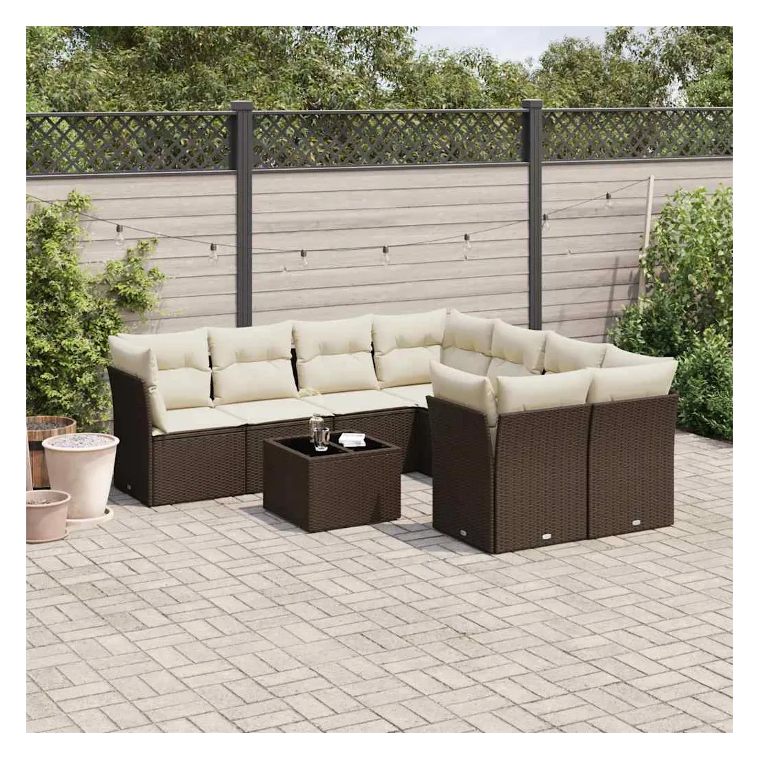 Cet ensemble de canapés de jardin est le complément parfait de votre arrière-cour, terrasse ou patio, offrant un espace confortable et accueillant pour discuter avec la famille et les amis ou simplement se détendre et profiter de l'extérieur. Matériau durable : la résine tressée, également connue sous le nom de poly rotin, est un matériau synthétique solide et nécessitant peu d'entretien qui ressemble au rotin naturel. Il est léger, facile à nettoyer et couramment utilisé pour les meubles d'extérieur en raison de sa durabilité et de ses propriétés de résistance aux intempéries.Expérience d'assise confortable : cet ensemble de meubles d'extérieur, doté de coussins épais, offre une expérience d'assise confortable.Housse amovible et lavable : ces coussins de siège sont dotés de housses amovibles pour un lavage et un entretien faciles.Dessus en verre : le dessus de la table d'extérieur est fabriqué en verre trempé solide et durable, ce qui le rend facile à nettoyer avec un chiffon humide et ajoute une touche d'élégance à votre espace extérieur.Conception modulaire : cet ensemble de meubles d'extérieur a une conception modulaire, ce qui le rend complètement flexible et facile à déplacer, afin que vous puissiez créer un agencement de meubles d'extérieur personnalisé. Bon à savoir :Pour que vos meubles d'extérieur restent beaux, nous vous recommandons de les protéger avec une housse imperméable.