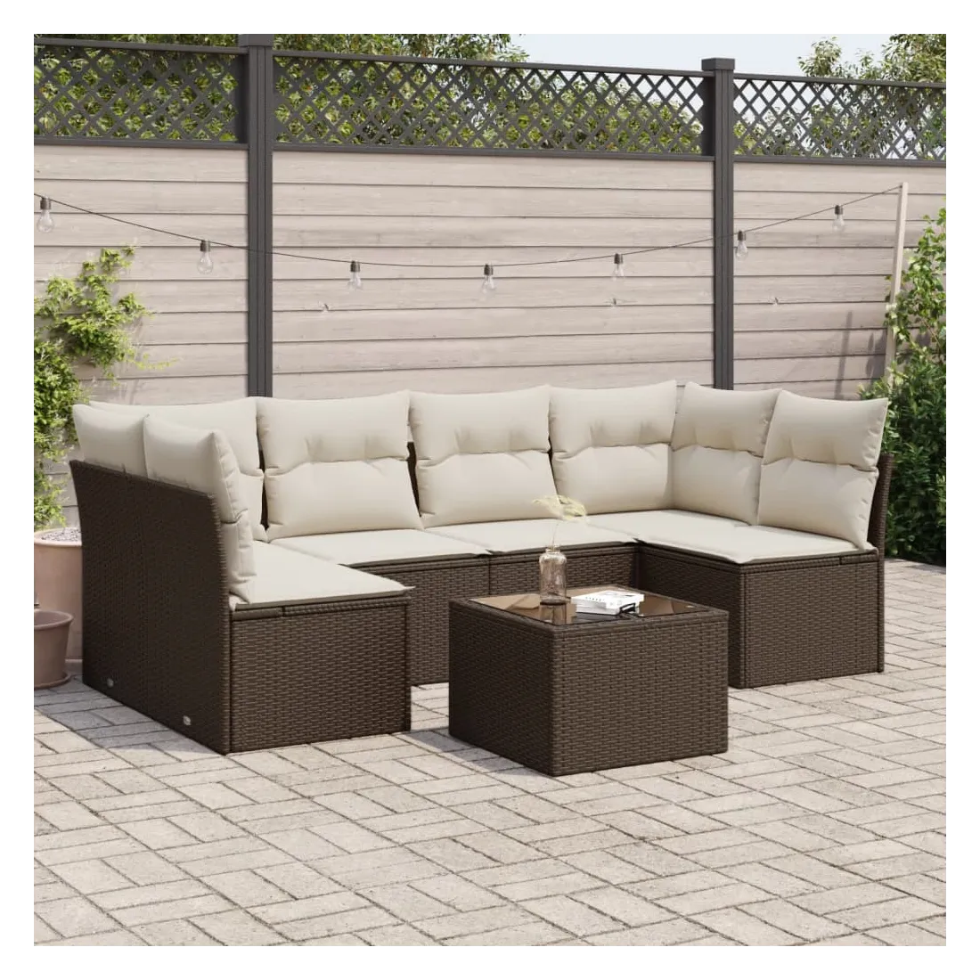 Cet ensemble de canapés de jardin est le complément parfait de votre arrière-cour, terrasse ou patio, offrant un espace confortable et accueillant pour discuter avec la famille et les amis ou simplement se détendre et profiter de l'extérieur. Matériau durable : la résine tressée, également connue sous le nom de poly rotin, est un matériau synthétique solide et nécessitant peu d'entretien qui ressemble au rotin naturel. Il est léger, facile à nettoyer et couramment utilisé pour les meubles d'extérieur en raison de sa durabilité et de ses propriétés de résistance aux intempéries.Expérience d'assise confortable : cet ensemble de meubles d'extérieur, doté de coussins épais, offre une expérience d'assise confortable.Housse amovible et lavable : ces coussins de siège sont dotés de housses amovibles pour un lavage et un entretien faciles.Dessus en verre : le dessus de la table d'extérieur est fabriqué en verre trempé solide et durable, ce qui le rend facile à nettoyer avec un chiffon humide et ajoute une touche d'élégance à votre espace extérieur.Conception modulaire : cet ensemble de meubles d'extérieur a une conception modulaire, ce qui le rend complètement flexible et facile à déplacer, afin que vous puissiez créer un agencement de meubles d'extérieur personnalisé. Bon à savoir :Pour que vos meubles d'extérieur restent beaux, nous vous recommandons de les protéger avec une housse imperméable.