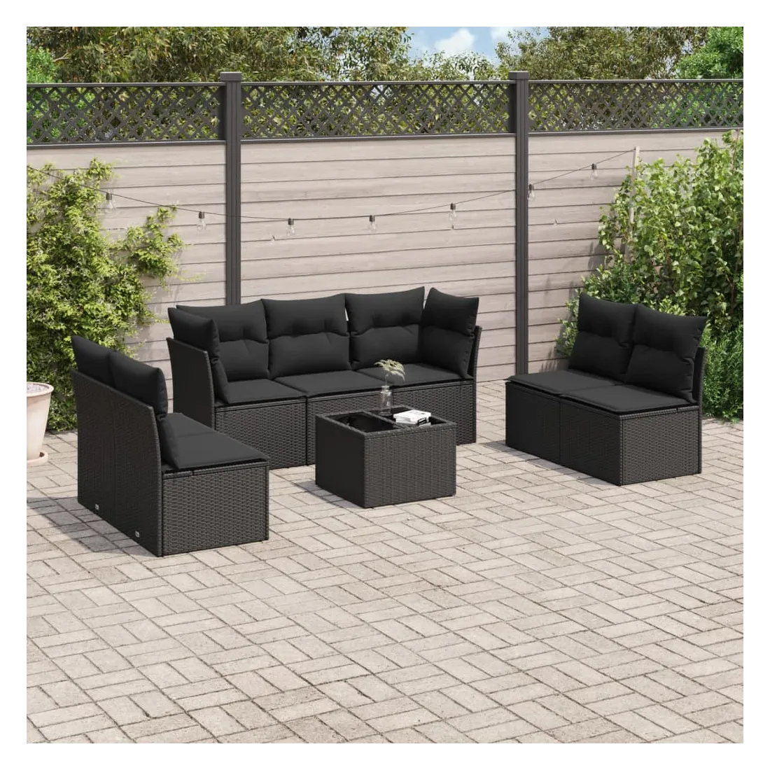 Salon de jardin 8 pcs avec coussins noir résine tressée