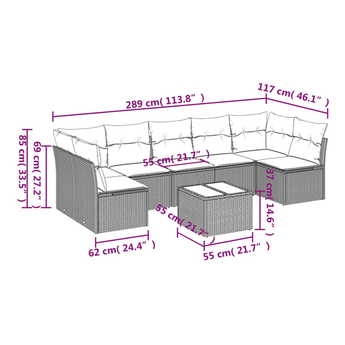 - Dimensions du coussin de siège : 55 x 55 x 3 cm (l x P x é)