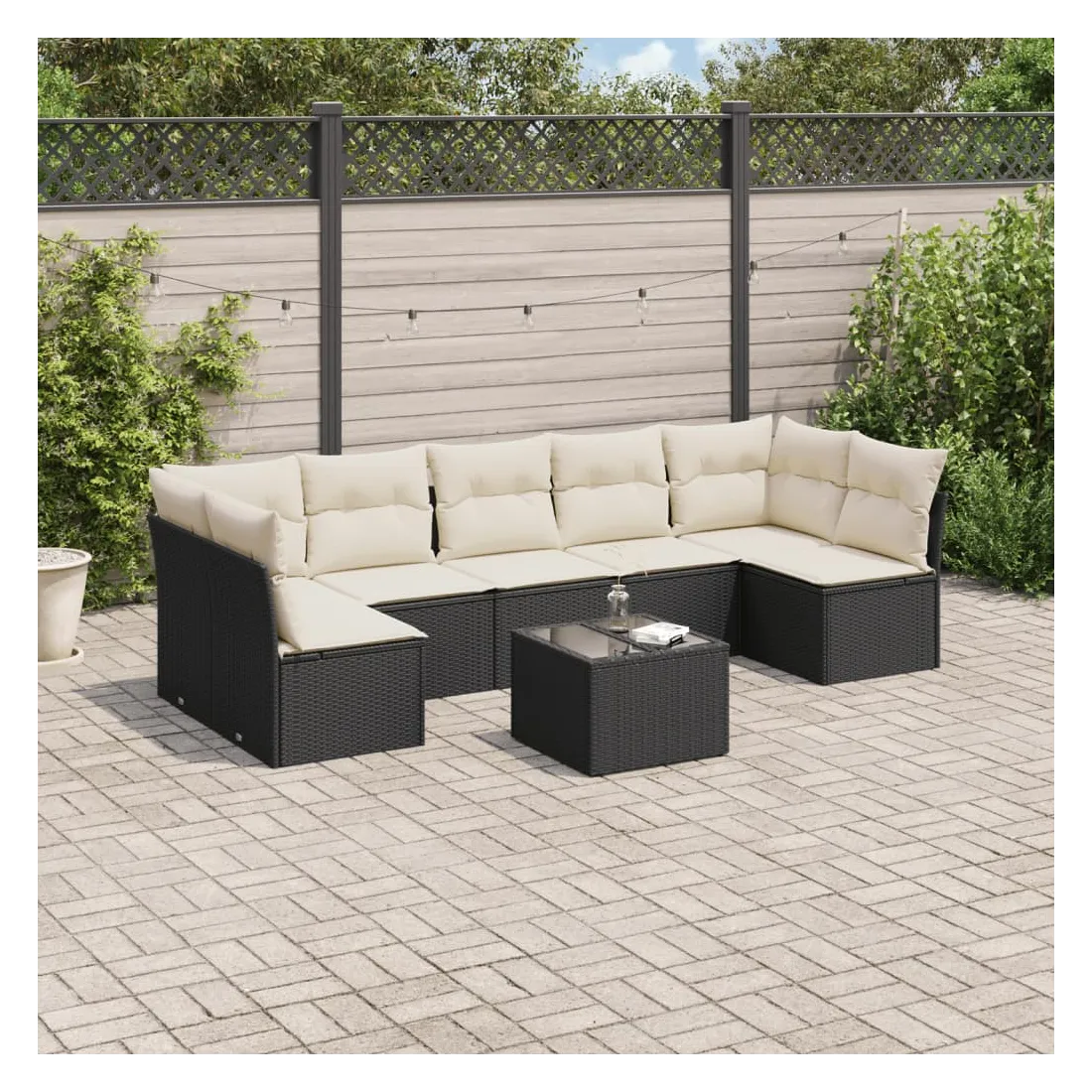 Salon de jardin 8 pcs avec coussins noir résine tressée