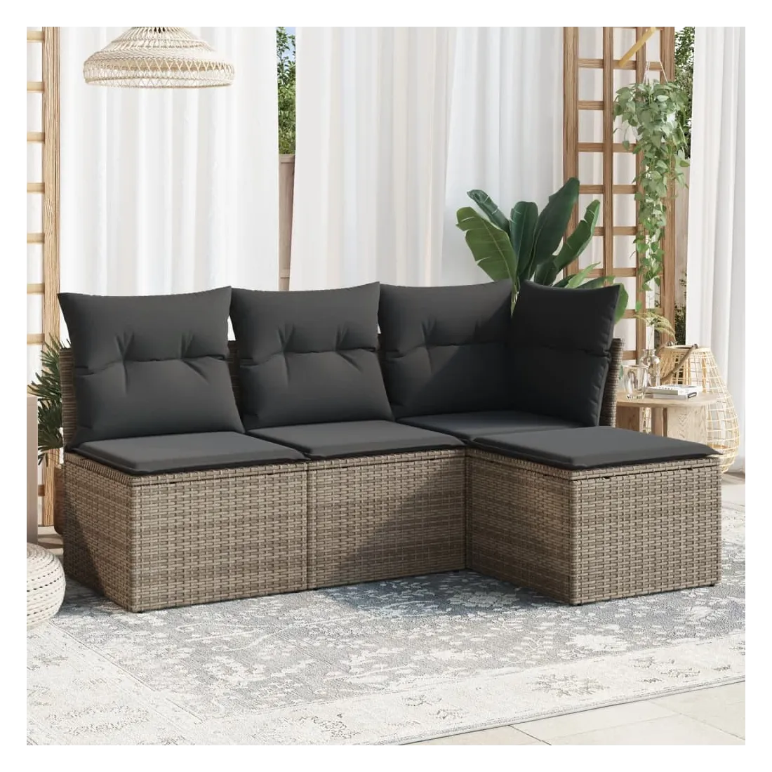 Cet ensemble de canapés de jardin est le complément parfait de votre arrière-cour, terrasse ou patio, offrant un espace confortable et accueillant pour discuter avec la famille et les amis ou simplement se détendre et profiter de l'extérieur. Matériau durable : la résine tressée, également connue sous le nom de poly rotin, est un matériau synthétique solide et nécessitant peu d'entretien qui ressemble au rotin naturel. Il est léger, facile à nettoyer et couramment utilisé pour les meubles d'extérieur en raison de sa durabilité et de ses propriétés de résistance aux intempéries.Expérience d'assise confortable : cet ensemble de meubles d'extérieur, doté de coussins épais, offre une expérience d'assise confortable.Housse amovible et lavable : ces coussins de siège sont dotés de housses amovibles pour un lavage et un entretien faciles.Conception modulaire : cet ensemble de meubles d'extérieur a une conception modulaire, ce qui le rend complètement flexible et facile à déplacer, afin que vous puissiez créer un agencement de meubles d'extérieur personnalisé. Bon à savoir :Pour que vos meubles d'extérieur restent beaux, nous vous recommandons de les protéger avec une housse imperméable.