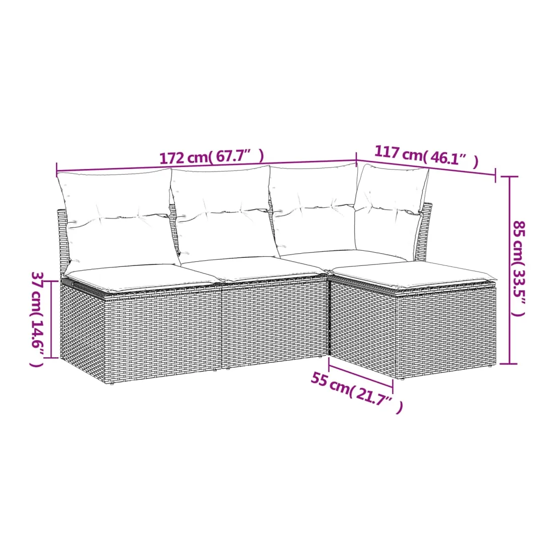 - Dimensions du coussin de siège : 55 x 55 x 3 cm (l x P x é)