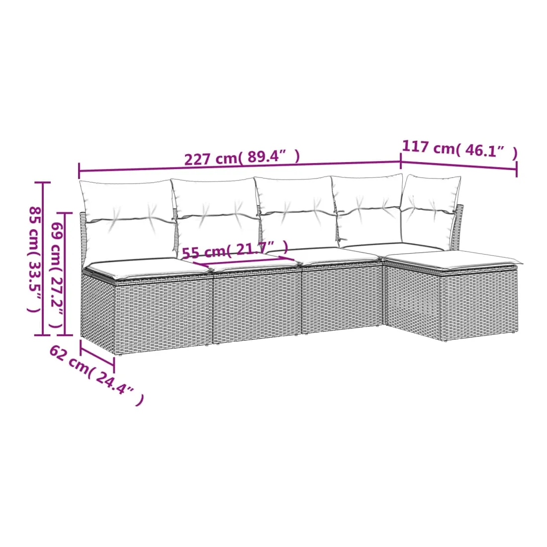 - Dimensions du coussin de dossier : 55 x 45 x 13 cm (L x l x é)