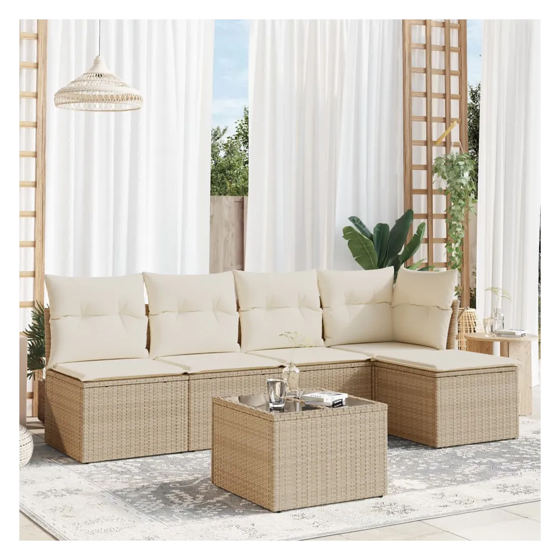 Cet ensemble de canapés de jardin est le complément parfait de votre arrière-cour, terrasse ou patio, offrant un espace confortable et accueillant pour discuter avec la famille et les amis ou simplement se détendre et profiter de l'extérieur. Matériau durable : la résine tressée, également connue sous le nom de poly rotin, est un matériau synthétique solide et nécessitant peu d'entretien qui ressemble au rotin naturel. Il est léger, facile à nettoyer et couramment utilisé pour les meubles d'extérieur en raison de sa durabilité et de ses propriétés de résistance aux intempéries.Expérience d'assise confortable : cet ensemble de meubles d'extérieur, doté de coussins épais, offre une expérience d'assise confortable.Housse amovible et lavable : ces coussins de siège sont dotés de housses amovibles pour un lavage et un entretien faciles.Dessus en verre : le dessus de la table d'extérieur est fabriqué en verre trempé solide et durable, ce qui le rend facile à nettoyer avec un chiffon humide et ajoute une touche d'élégance à votre espace extérieur.Conception modulaire : cet ensemble de meubles d'extérieur a une conception modulaire, ce qui le rend complètement flexible et facile à déplacer, afin que vous puissiez créer un agencement de meubles d'extérieur personnalisé. Bon à savoir :Pour que vos meubles d'extérieur restent beaux, nous vous recommandons de les protéger avec une housse imperméable.