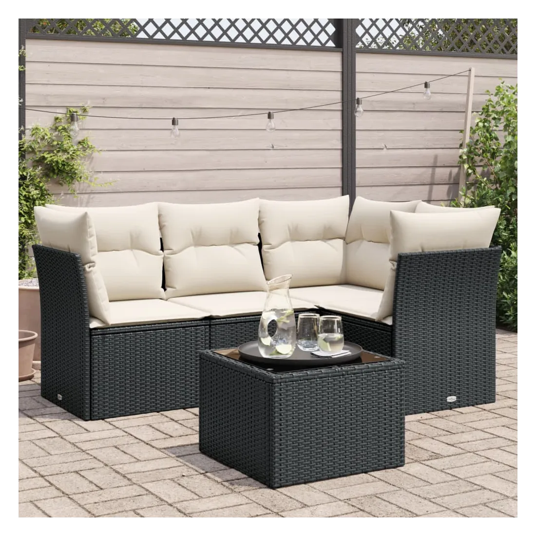 Cet ensemble de canapés de jardin est le complément parfait de votre arrière-cour, terrasse ou patio, offrant un espace confortable et accueillant pour discuter avec la famille et les amis ou simplement se détendre et profiter de l'extérieur. Matériau durable : la résine tressée, également connue sous le nom de poly rotin, est un matériau synthétique solide et nécessitant peu d'entretien qui ressemble au rotin naturel. Il est léger, facile à nettoyer et couramment utilisé pour les meubles d'extérieur en raison de sa durabilité et de ses propriétés de résistance aux intempéries.Expérience d'assise confortable : cet ensemble de meubles d'extérieur, doté de coussins épais, offre une expérience d'assise confortable.Housse amovible et lavable : ces coussins de siège sont dotés de housses amovibles pour un lavage et un entretien faciles.Dessus en verre : le dessus de la table d'extérieur est fabriqué en verre trempé solide et durable, ce qui le rend facile à nettoyer avec un chiffon humide et ajoute une touche d'élégance à votre espace extérieur.Conception modulaire : cet ensemble de meubles d'extérieur a une conception modulaire, ce qui le rend complètement flexible et facile à déplacer, afin que vous puissiez créer un agencement de meubles d'extérieur personnalisé. Bon à savoir :Pour que vos meubles d'extérieur restent beaux, nous vous recommandons de les protéger avec une housse imperméable.