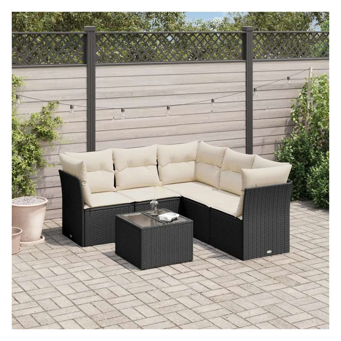 Salon de jardin 6 pcs avec coussins noir résine tressée