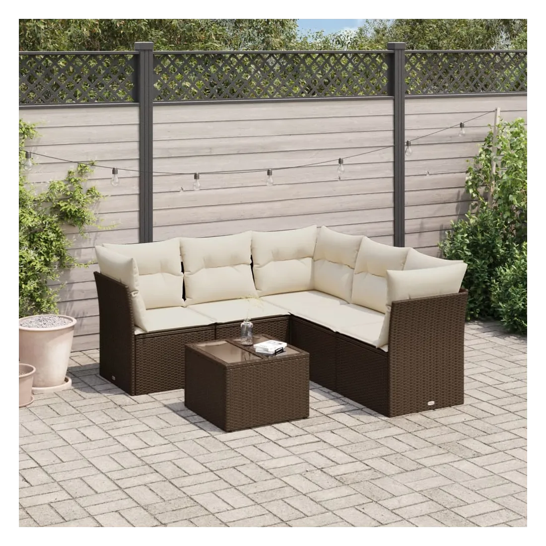 Cet ensemble de canapés de jardin est le complément parfait de votre arrière-cour, terrasse ou patio, offrant un espace confortable et accueillant pour discuter avec la famille et les amis ou simplement se détendre et profiter de l'extérieur. Matériau durable : la résine tressée, également connue sous le nom de poly rotin, est un matériau synthétique solide et nécessitant peu d'entretien qui ressemble au rotin naturel. Il est léger, facile à nettoyer et couramment utilisé pour les meubles d'extérieur en raison de sa durabilité et de ses propriétés de résistance aux intempéries.Expérience d'assise confortable : cet ensemble de meubles d'extérieur, doté de coussins épais, offre une expérience d'assise confortable.Housse amovible et lavable : ces coussins de siège sont dotés de housses amovibles pour un lavage et un entretien faciles.Dessus en verre : le dessus de la table d'extérieur est fabriqué en verre trempé solide et durable, ce qui le rend facile à nettoyer avec un chiffon humide et ajoute une touche d'élégance à votre espace extérieur.Conception modulaire : cet ensemble de meubles d'extérieur a une conception modulaire, ce qui le rend complètement flexible et facile à déplacer, afin que vous puissiez créer un agencement de meubles d'extérieur personnalisé. Bon à savoir :Pour que vos meubles d'extérieur restent beaux, nous vous recommandons de les protéger avec une housse imperméable.