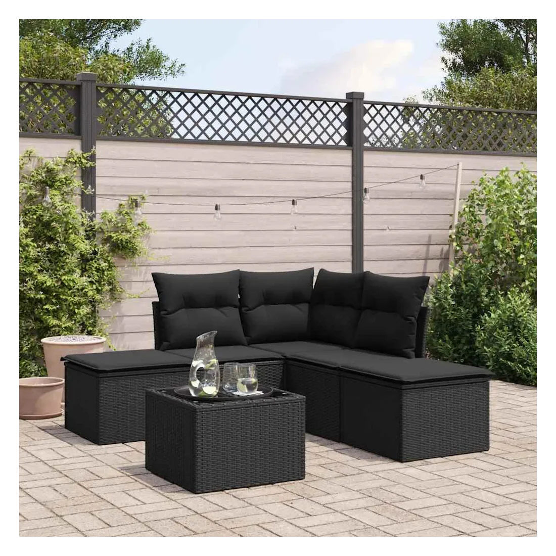 Cet ensemble de canapés de jardin est le complément parfait de votre arrière-cour, terrasse ou patio, offrant un espace confortable et accueillant pour discuter avec la famille et les amis ou simplement se détendre et profiter de l'extérieur. Matériau durable : la résine tressée, également connue sous le nom de poly rotin, est un matériau synthétique solide et nécessitant peu d'entretien qui ressemble au rotin naturel. Il est léger, facile à nettoyer et couramment utilisé pour les meubles d'extérieur en raison de sa durabilité et de ses propriétés de résistance aux intempéries.Expérience d'assise confortable : ce mobilier d'extérieur, doté de coussins épais, offre une expérience d'assise confortable.Dessus en verre : le dessus de la table d'extérieur est fabriqué en verre trempé solide et durable, ce qui le rend facile à nettoyer avec un chiffon humide et ajoute une touche d'élégance à votre espace extérieur.Housse amovible et lavable : ces coussins de siège sont dotés de housses amovibles pour un lavage et un entretien faciles.Conception modulaire : cet ensemble de meubles d'extérieur a une conception modulaire, ce qui le rend complètement flexible et facile à déplacer, afin que vous puissiez créer un agencement de meubles d'extérieur personnalisé. Bon à savoir :Pour que vos meubles d'extérieur restent beaux, nous vous recommandons de les protéger avec une housse imperméable.