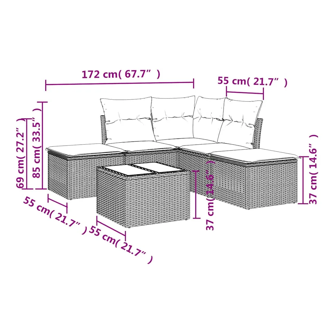 - Dimensions : 55 x 55 x 37 cm (L x l x H)