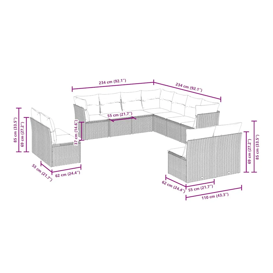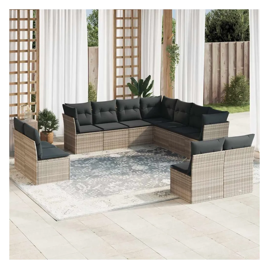 Cet ensemble de canapés de jardin est le complément parfait de votre arrière-cour, terrasse ou patio, offrant un espace confortable et accueillant pour discuter avec la famille et les amis ou simplement se détendre et profiter de l'extérieur. Matériau durable : la résine tressée, également connue sous le nom de poly rotin, est un matériau synthétique solide et nécessitant peu d'entretien qui ressemble au rotin naturel. Il est léger, facile à nettoyer et couramment utilisé pour les meubles d'extérieur en raison de sa durabilité et de ses propriétés de résistance aux intempéries.Expérience d'assise confortable : ce mobilier d'extérieur, doté de coussins épais, offre une expérience d'assise confortable.Housse amovible et lavable : ces coussins de siège sont dotés de housses amovibles pour un lavage et un entretien faciles.Conception modulaire : cet ensemble de meubles d'extérieur a une conception modulaire, ce qui le rend complètement flexible et facile à déplacer, afin que vous puissiez créer un agencement de meubles d'extérieur personnalisé. Bon à savoir :Pour que vos meubles d'extérieur restent beaux, nous vous recommandons de les protéger avec une housse imperméable.