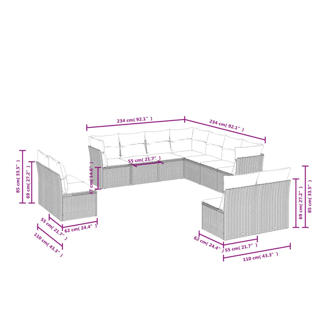 Cet ensemble de canapés de jardin est le complément parfait de votre arrière-cour, terrasse ou patio, offrant un espace confortable et accueillant pour discuter avec la famille et les amis ou simplement se détendre et profiter de l'extérieur. Matériau durable : la résine tressée, également connue sous le nom de poly rotin, est un matériau synthétique solide et nécessitant peu d'entretien qui ressemble au rotin naturel. Il est léger, facile à nettoyer et couramment utilisé pour les meubles d'extérieur en raison de sa durabilité et de ses propriétés de résistance aux intempéries.Expérience d'assise confortable : ce mobilier d'extérieur, doté de coussins épais, offre une expérience d'assise confortable.Housse amovible et lavable : ces coussins de siège sont dotés de housses amovibles pour un lavage et un entretien faciles.Conception modulaire : cet ensemble de meubles d'extérieur a une conception modulaire, ce qui le rend complètement flexible et facile à déplacer, afin que vous puissiez créer un agencement de meubles d'extérieur personnalisé. Bon à savoir :Pour que vos meubles d'extérieur restent beaux, nous vous recommandons de les protéger avec une housse imperméable.