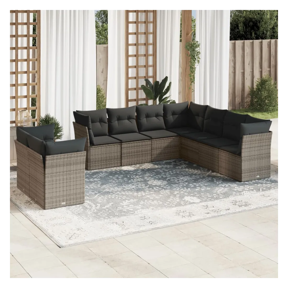 Cet ensemble de canapés de jardin est le complément parfait de votre arrière-cour, terrasse ou patio, offrant un espace confortable et accueillant pour discuter avec la famille et les amis ou simplement se détendre et profiter de l'extérieur. Matériau durable : la résine tressée, également connue sous le nom de poly rotin, est un matériau synthétique solide et nécessitant peu d'entretien qui ressemble au rotin naturel. Il est léger, facile à nettoyer et couramment utilisé pour les meubles d'extérieur en raison de sa durabilité et de ses propriétés de résistance aux intempéries.Expérience d'assise confortable : ce mobilier d'extérieur, doté de coussins épais, offre une expérience d'assise confortable.Housse amovible et lavable : ces coussins de siège sont dotés de housses amovibles pour un lavage et un entretien faciles.Conception modulaire : cet ensemble de meubles d'extérieur a une conception modulaire, ce qui le rend complètement flexible et facile à déplacer, afin que vous puissiez créer un agencement de meubles d'extérieur personnalisé. Bon à savoir :Pour que vos meubles d'extérieur restent beaux, nous vous recommandons de les protéger avec une housse imperméable.