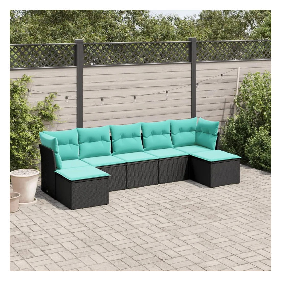 Cet ensemble de canapés de jardin est le complément parfait de votre arrière-cour, terrasse ou patio, offrant un espace confortable et accueillant pour discuter avec la famille et les amis ou simplement se détendre et profiter de l'extérieur. Matériau durable : la résine tressée, également connue sous le nom de poly rotin, est un matériau synthétique solide et nécessitant peu d'entretien qui ressemble au rotin naturel. Elle est légère, facile à nettoyer et couramment utilisée pour les meubles d'extérieur en raison de sa durabilité et de ses propriétés de résistance aux intempéries.Expérience d'assise confortable : ce mobilier d'extérieur, doté de coussins épais, offre une expérience d'assise confortable.Housse amovible et lavable : ces coussins de siège sont dotés de housses amovibles pour un lavage et un entretien faciles.Conception modulaire : cet ensemble de meubles d'extérieur a une conception modulaire, ce qui le rend complètement flexible et facile à déplacer, afin que vous puissiez créer un agencement de meubles d'extérieur personnalisé. Bon à savoir :Pour que vos meubles d'extérieur restent beaux, nous vous recommandons de les protéger avec une housse imperméable.