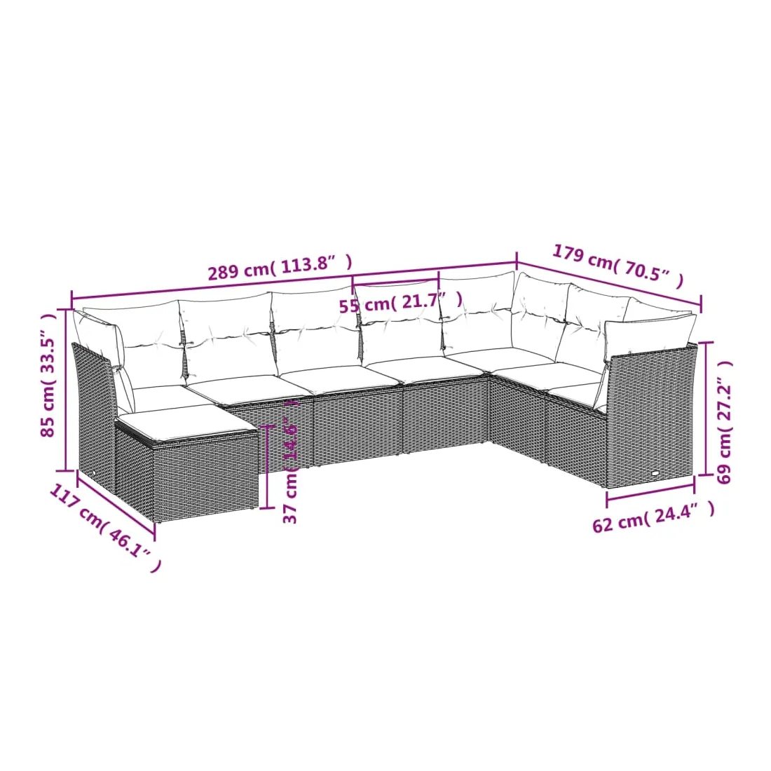 Cet ensemble de canapés de jardin est le complément parfait de votre arrière-cour, terrasse ou patio, offrant un espace confortable et accueillant pour discuter avec la famille et les amis ou simplement se détendre et profiter de l'extérieur. Matériau durable : la résine tressée, également connue sous le nom de poly rotin, est un matériau synthétique solide et nécessitant peu d'entretien qui ressemble au rotin naturel. Il est léger, facile à nettoyer et couramment utilisé pour les meubles d'extérieur en raison de sa durabilité et de ses propriétés de résistance aux intempéries.Expérience d'assise confortable : ce mobilier d'extérieur, doté de coussins épais, offre une expérience d'assise confortable.Housse amovible et lavable : ces coussins de siège sont dotés de housses amovibles pour un lavage et un entretien faciles.Conception modulaire : cet ensemble de meubles d'extérieur a une conception modulaire, ce qui le rend complètement flexible et facile à déplacer, afin que vous puissiez créer un agencement de meubles d'extérieur personnalisé. Bon à savoir :Pour que vos meubles d'extérieur restent beaux, nous vous recommandons de les protéger avec une housse imperméable.
