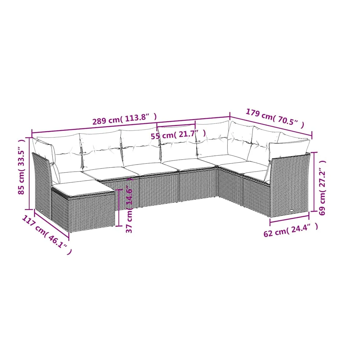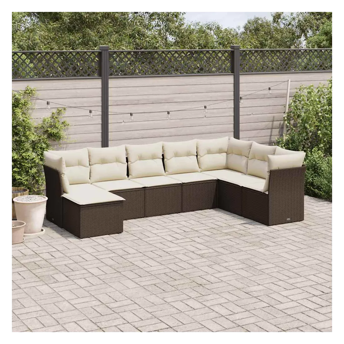 Cet ensemble de canapés de jardin est le complément parfait de votre arrière-cour, terrasse ou patio, offrant un espace confortable et accueillant pour discuter avec la famille et les amis ou simplement se détendre et profiter de l'extérieur. Matériau durable : la résine tressée, également connue sous le nom de poly rotin, est un matériau synthétique solide et nécessitant peu d'entretien qui ressemble au rotin naturel. Il est léger, facile à nettoyer et couramment utilisé pour les meubles d'extérieur en raison de sa durabilité et de ses propriétés de résistance aux intempéries.Expérience d'assise confortable : ce mobilier d'extérieur, doté de coussins épais, offre une expérience d'assise confortable.Housse amovible et lavable : ces coussins de siège sont dotés de housses amovibles pour un lavage et un entretien faciles.Conception modulaire : cet ensemble de meubles d'extérieur a une conception modulaire, ce qui le rend complètement flexible et facile à déplacer, afin que vous puissiez créer un agencement de meubles d'extérieur personnalisé. Bon à savoir :Pour que vos meubles d'extérieur restent beaux, nous vous recommandons de les protéger avec une housse imperméable.