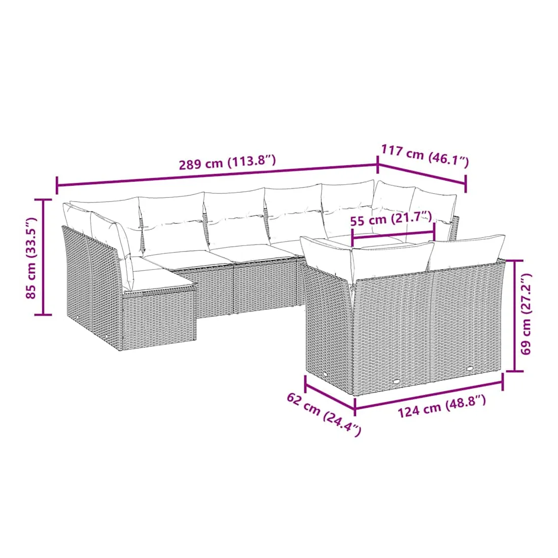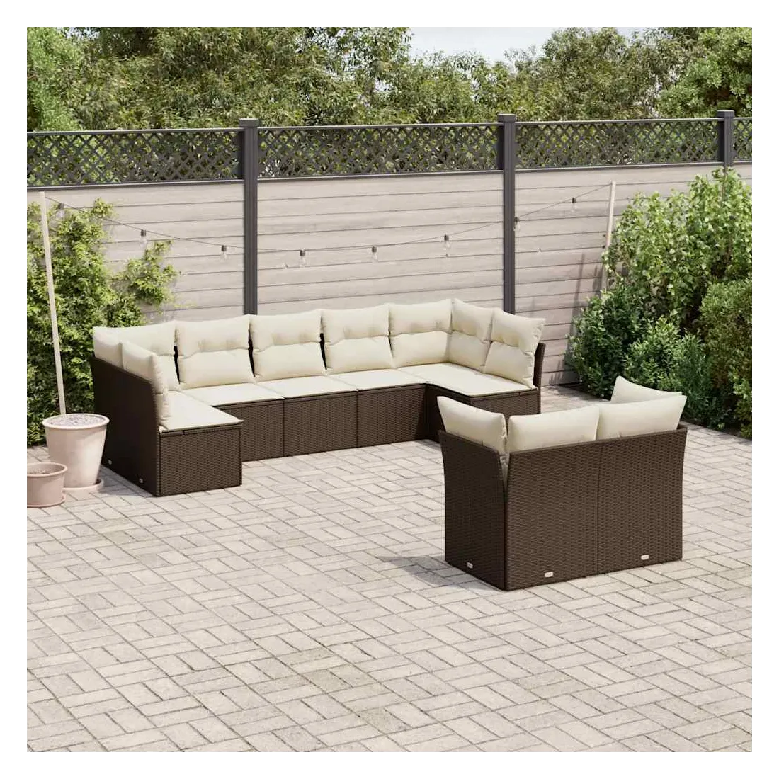 Salon de jardin avec coussins 9 pcs marron résine tressée
