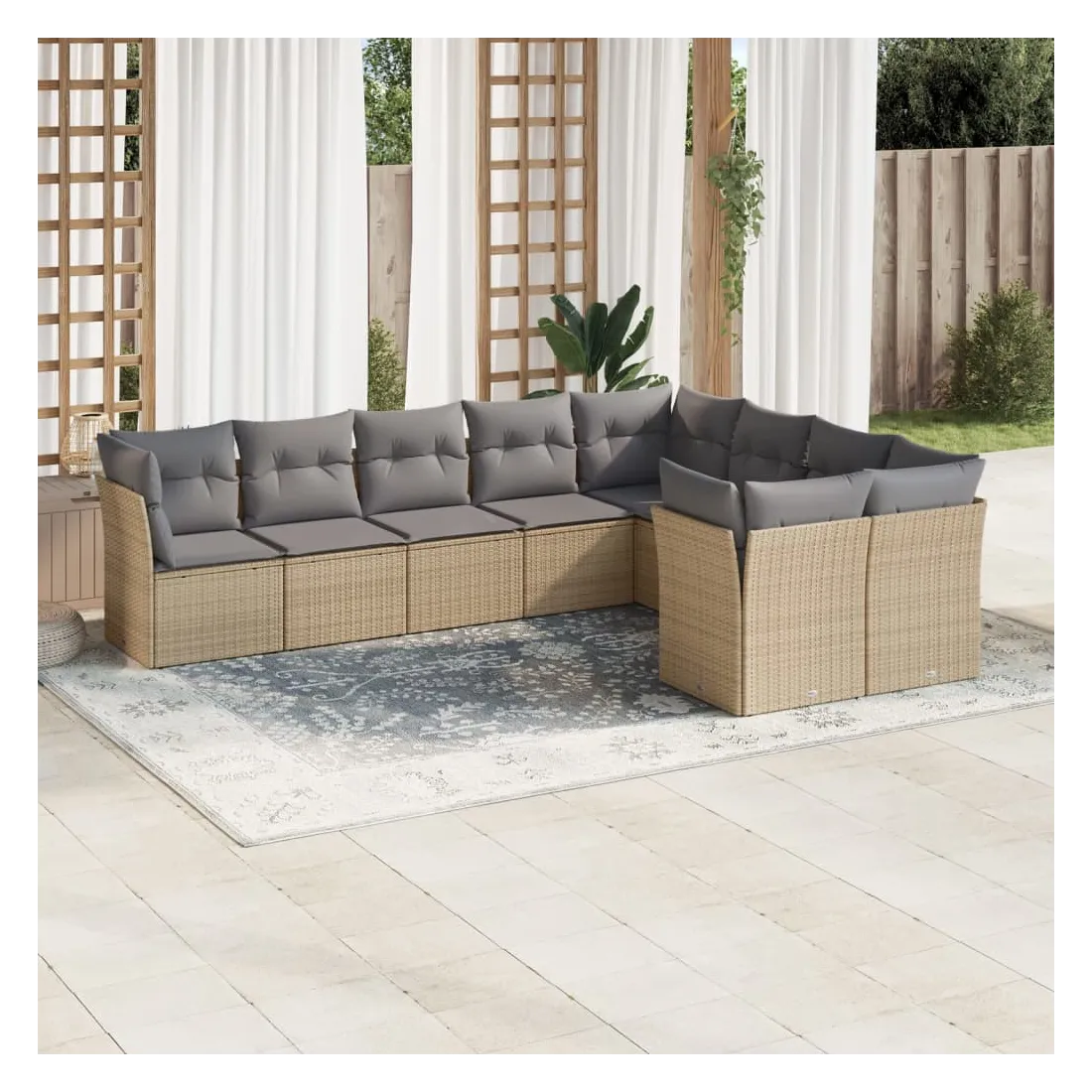 Salon de jardin avec coussins 9 pcs beige résine tressée