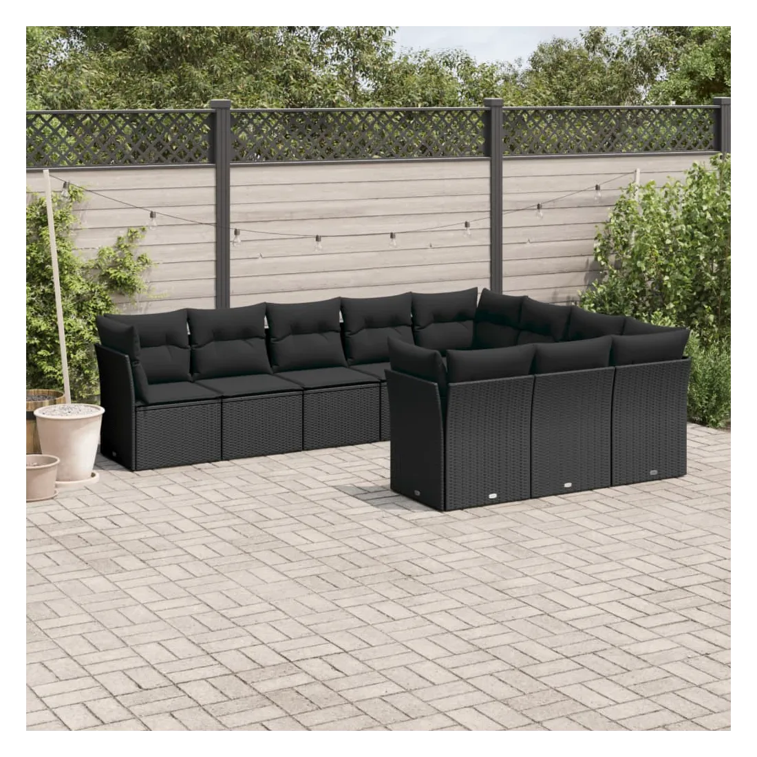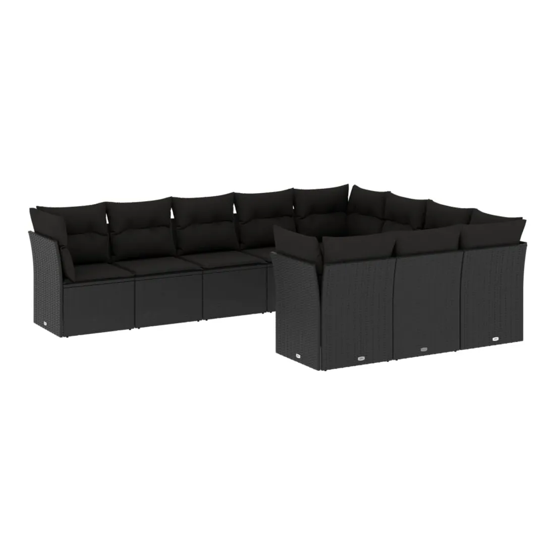 Salon de jardin 10 pcs avec coussins noir résine tressée