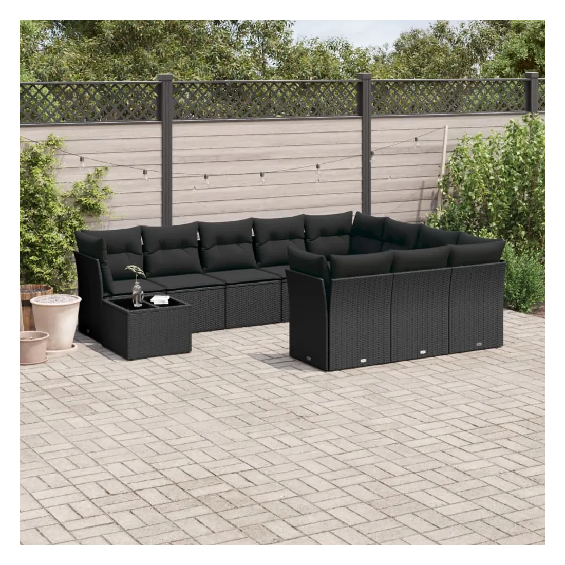 Cet ensemble de canapés de jardin est le complément parfait de votre arrière-cour, terrasse ou patio, offrant un espace confortable et accueillant pour discuter avec la famille et les amis ou simplement se détendre et profiter de l'extérieur. Matériau durable : la résine tressée, également connue sous le nom de poly rotin, est un matériau synthétique solide et nécessitant peu d'entretien qui ressemble au rotin naturel. Il est léger, facile à nettoyer et couramment utilisé pour les meubles d'extérieur en raison de sa durabilité et de ses propriétés de résistance aux intempéries.Expérience d'assise confortable : ce mobilier d'extérieur, doté de coussins épais, offre une expérience d'assise confortable.Dessus en verre : le dessus de la table d'extérieur est fabriqué en verre trempé solide et durable, ce qui le rend facile à nettoyer avec un chiffon humide et ajoute une touche d'élégance à votre espace extérieur.Housse amovible et lavable : ces coussins de siège sont dotés de housses amovibles pour un lavage et un entretien faciles.Conception modulaire : cet ensemble de meubles d'extérieur a une conception modulaire, ce qui le rend complètement flexible et facile à déplacer, afin que vous puissiez créer un agencement de meubles d'extérieur personnalisé. Bon à savoir :Pour que vos meubles d'extérieur restent beaux, nous vous recommandons de les protéger avec une housse imperméable.