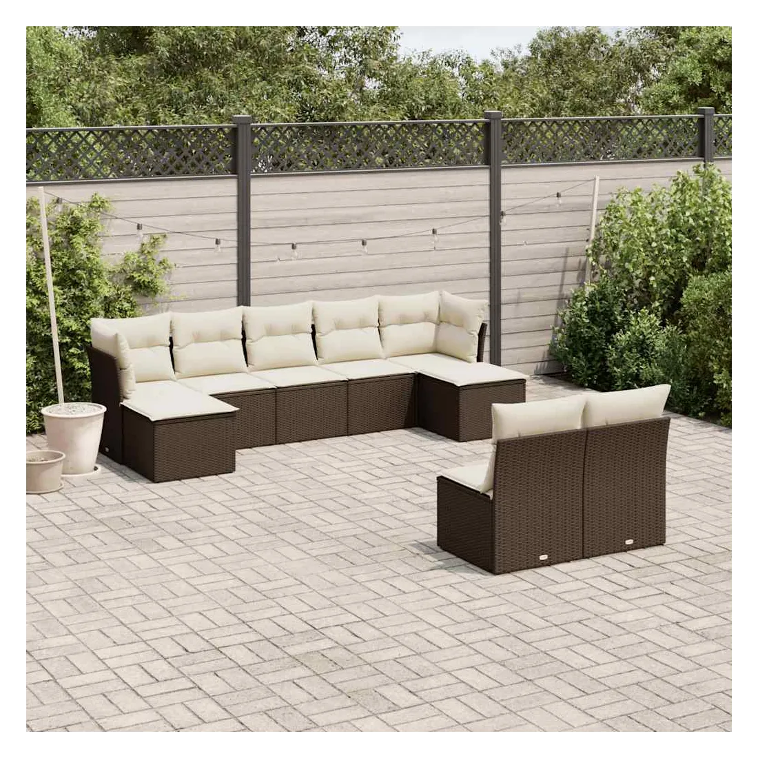 Cet ensemble de canapés de jardin est le complément parfait de votre arrière-cour, terrasse ou patio, offrant un espace confortable et accueillant pour discuter avec la famille et les amis ou simplement se détendre et profiter de l'extérieur. Matériau durable : la résine tressée, également connue sous le nom de poly rotin, est un matériau synthétique solide et nécessitant peu d'entretien qui ressemble au rotin naturel. Il est léger, facile à nettoyer et couramment utilisé pour les meubles d'extérieur en raison de sa durabilité et de ses propriétés de résistance aux intempéries.Expérience d'assise confortable : ce mobilier d'extérieur, doté de coussins épais, offre une expérience d'assise confortable.Housse amovible et lavable : ces coussins de siège sont dotés de housses amovibles pour un lavage et un entretien faciles.Conception modulaire : cet ensemble de meubles d'extérieur a une conception modulaire, ce qui le rend complètement flexible et facile à déplacer, afin que vous puissiez créer un agencement de meubles d'extérieur personnalisé. Bon à savoir :Pour que vos meubles d'extérieur restent beaux, nous vous recommandons de les protéger avec une housse imperméable.