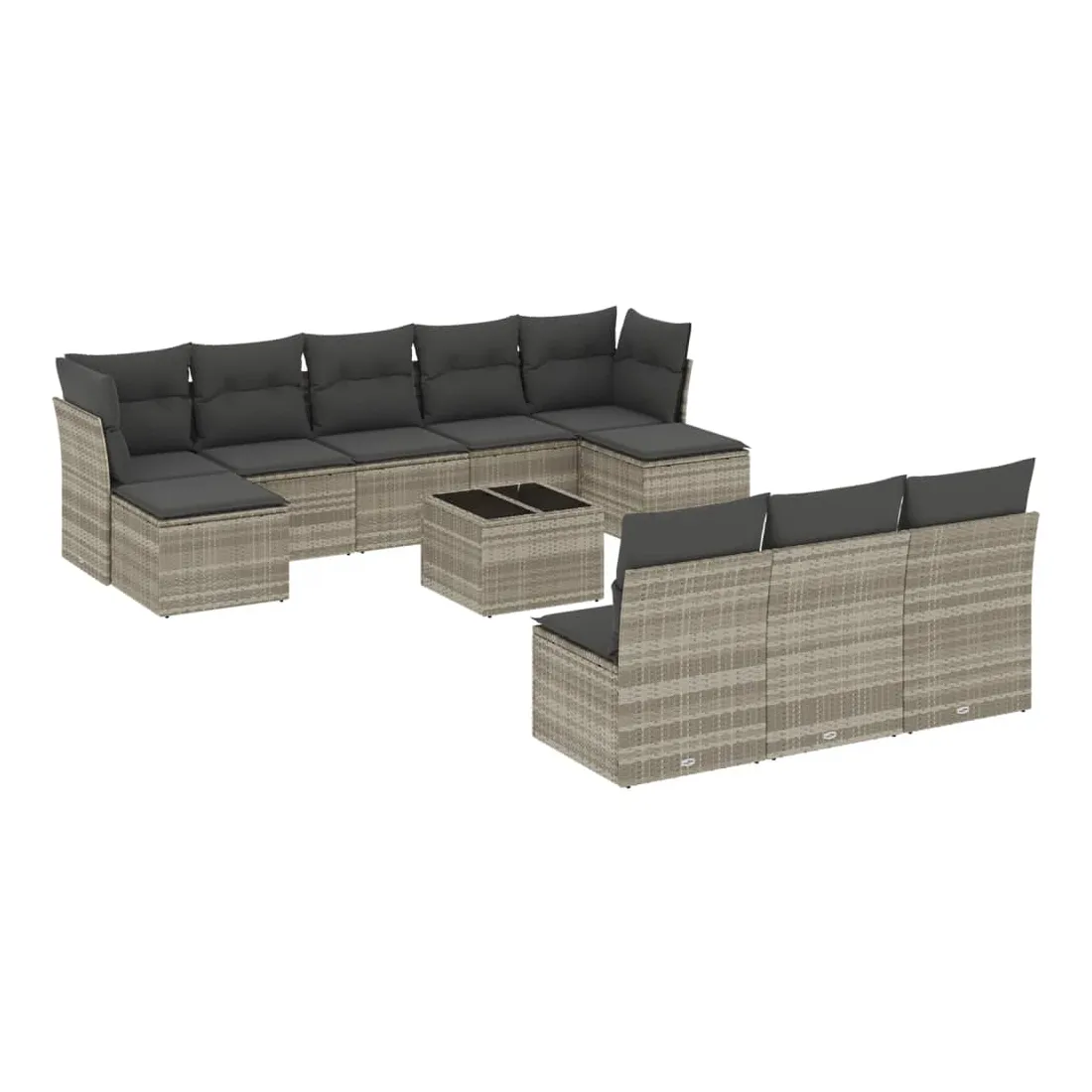 Cet ensemble de canapés de jardin est le complément parfait de votre arrière-cour, terrasse ou patio, offrant un espace confortable et accueillant pour discuter avec la famille et les amis ou simplement se détendre et profiter de l'extérieur. Matériau durable : la résine tressée, également connue sous le nom de poly rotin, est un matériau synthétique solide et nécessitant peu d'entretien qui ressemble au rotin naturel. Il est léger, facile à nettoyer et couramment utilisé pour les meubles d'extérieur en raison de sa durabilité et de ses propriétés de résistance aux intempéries.Expérience d'assise confortable : ce mobilier d'extérieur, doté de coussins épais, offre une expérience d'assise confortable.Dessus en verre : le dessus de la table d'extérieur est fabriqué en verre trempé solide et durable, ce qui le rend facile à nettoyer avec un chiffon humide et ajoute une touche d'élégance à votre espace extérieur.Housse amovible et lavable : ces coussins de siège sont dotés de housses amovibles pour un lavage et un entretien faciles.Conception modulaire : cet ensemble de meubles d'extérieur a une conception modulaire, ce qui le rend complètement flexible et facile à déplacer, afin que vous puissiez créer un agencement de meubles d'extérieur personnalisé. Bon à savoir :Pour que vos meubles d'extérieur restent beaux, nous vous recommandons de les protéger avec une housse imperméable.