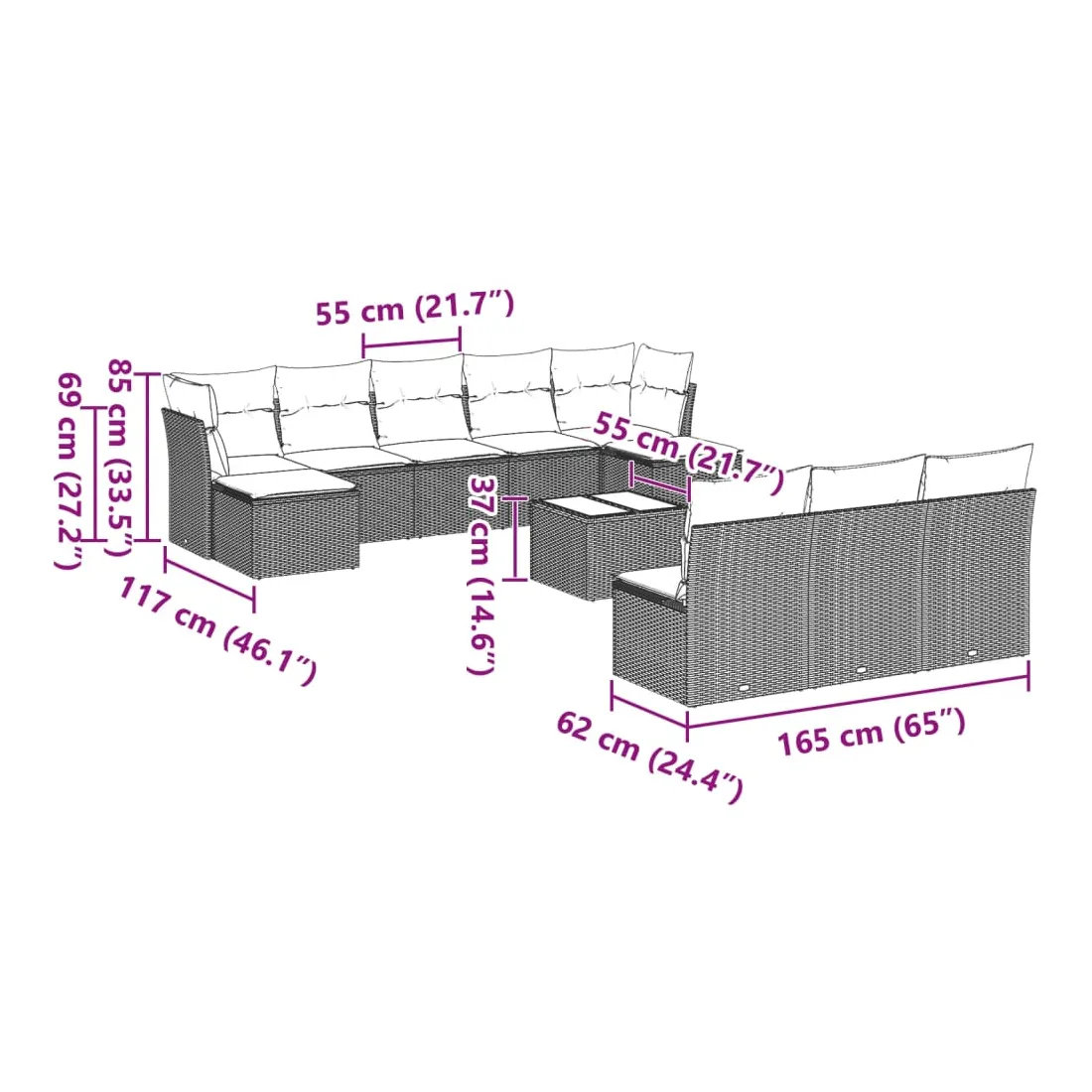 - Dimensions du coussin de dossier : 55 x 45 x 13 cm (L x l x é)