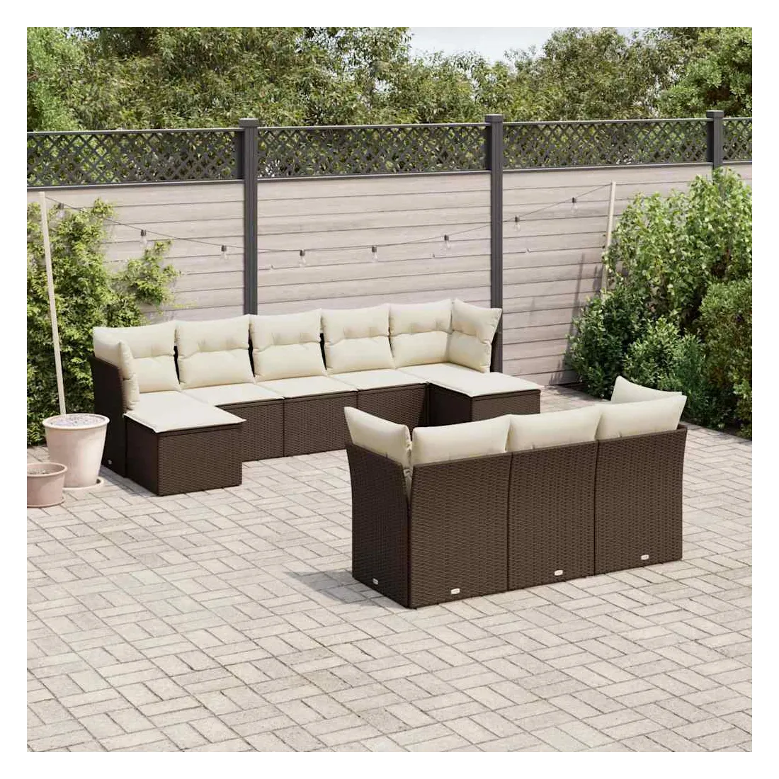 Cet ensemble de canapés de jardin est le complément parfait de votre arrière-cour, terrasse ou patio, offrant un espace confortable et accueillant pour discuter avec la famille et les amis ou simplement se détendre et profiter de l'extérieur. Matériau durable : la résine tressée, également connue sous le nom de poly rotin, est un matériau synthétique solide et nécessitant peu d'entretien qui ressemble au rotin naturel. Il est léger, facile à nettoyer et couramment utilisé pour les meubles d'extérieur en raison de sa durabilité et de ses propriétés de résistance aux intempéries.Expérience d'assise confortable : ce mobilier d'extérieur, doté de coussins épais, offre une expérience d'assise confortable.Housse amovible et lavable : ces coussins de siège sont dotés de housses amovibles pour un lavage et un entretien faciles.Conception modulaire : cet ensemble de meubles d'extérieur a une conception modulaire, ce qui le rend complètement flexible et facile à déplacer, afin que vous puissiez créer un agencement de meubles d'extérieur personnalisé. Bon à savoir :Pour que vos meubles d'extérieur restent beaux, nous vous recommandons de les protéger avec une housse imperméable.