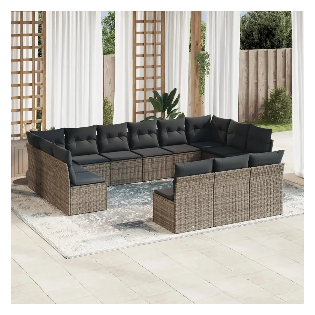 Cet ensemble de canapés de jardin est le complément parfait de votre arrière-cour, terrasse ou patio, offrant un espace confortable et accueillant pour discuter avec la famille et les amis ou simplement se détendre et profiter de l'extérieur. Matériau durable : la résine tressée, également connue sous le nom de poly rotin, est un matériau synthétique solide et nécessitant peu d'entretien qui ressemble au rotin naturel. Il est léger, facile à nettoyer et couramment utilisé pour les meubles d'extérieur en raison de sa durabilité et de ses propriétés de résistance aux intempéries.Expérience d'assise confortable : ce mobilier d'extérieur, doté de coussins épais, offre une expérience d'assise confortable.Housse amovible et lavable : ces coussins de siège sont dotés de housses amovibles pour un lavage et un entretien faciles.Conception modulaire : cet ensemble de meubles d'extérieur a une conception modulaire, ce qui le rend complètement flexible et facile à déplacer, afin que vous puissiez créer un agencement de meubles d'extérieur personnalisé. Bon à savoir :Pour que vos meubles d'extérieur restent beaux, nous vous recommandons de les protéger avec une housse imperméable.