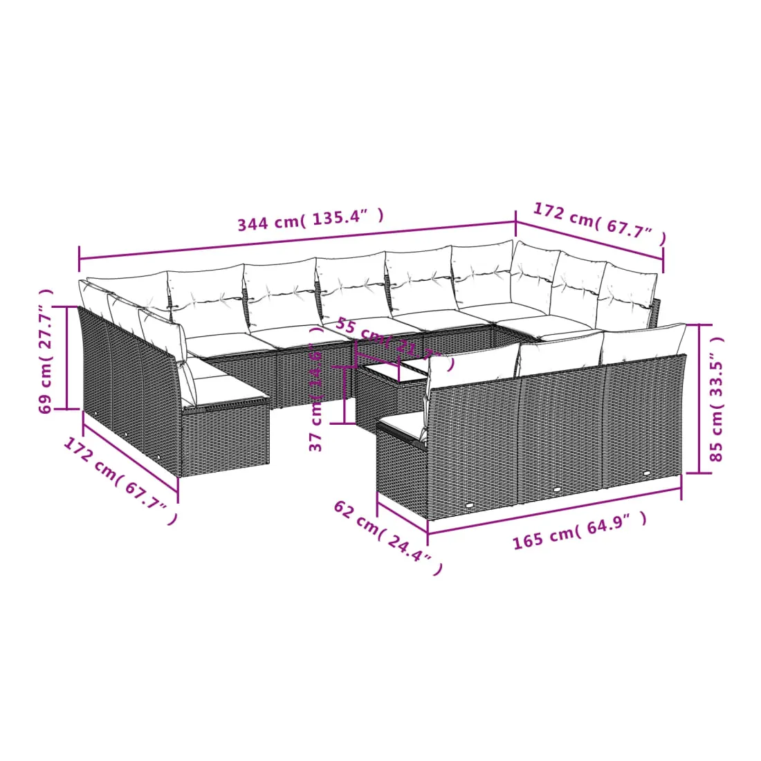- Dimensions du coussin de dossier : 55 x 45 x 13 cm (L x l x é)