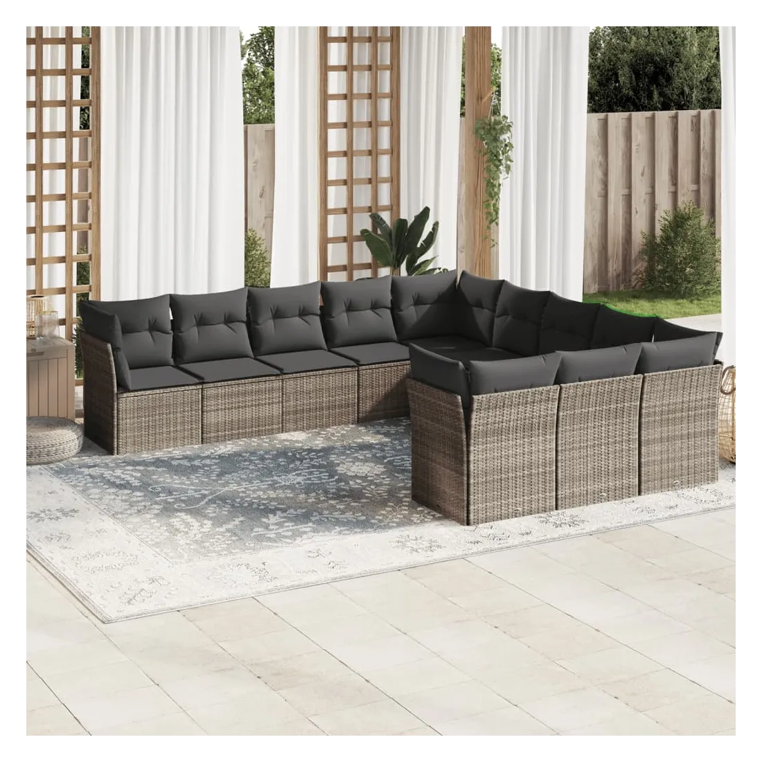 Cet ensemble de canapés de jardin est le complément parfait de votre arrière-cour, terrasse ou patio, offrant un espace confortable et accueillant pour discuter avec la famille et les amis ou simplement se détendre et profiter de l'extérieur. Matériau durable : la résine tressée, également connue sous le nom de poly rotin, est un matériau synthétique solide et nécessitant peu d'entretien qui ressemble au rotin naturel. Il est léger, facile à nettoyer et couramment utilisé pour les meubles d'extérieur en raison de sa durabilité et de ses propriétés de résistance aux intempéries.Expérience d'assise confortable : ce mobilier d'extérieur, doté de coussins épais, offre une expérience d'assise confortable.Housse amovible et lavable : ces coussins de siège sont dotés de housses amovibles pour un lavage et un entretien faciles.Conception modulaire : cet ensemble de meubles d'extérieur a une conception modulaire, ce qui le rend complètement flexible et facile à déplacer, afin que vous puissiez créer un agencement de meubles d'extérieur personnalisé. Bon à savoir :Pour que vos meubles d'extérieur restent beaux, nous vous recommandons de les protéger avec une housse imperméable.