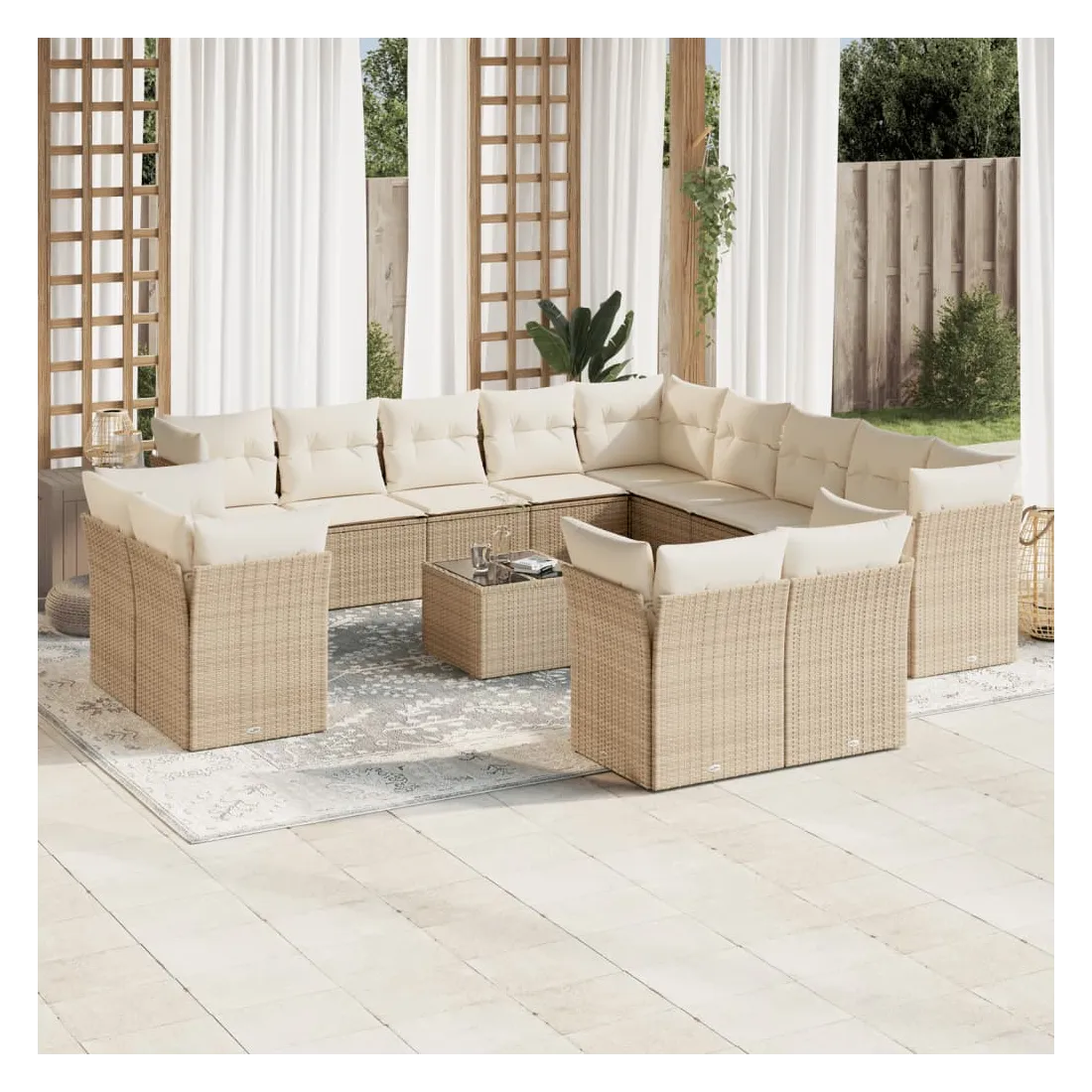 Cet ensemble de canapés de jardin est le complément parfait de votre arrière-cour, terrasse ou patio, offrant un espace confortable et accueillant pour discuter avec la famille et les amis ou simplement se détendre et profiter de l'extérieur. Matériau durable : la résine tressée, également connue sous le nom de poly rotin, est un matériau synthétique solide et nécessitant peu d'entretien qui ressemble au rotin naturel. Il est léger, facile à nettoyer et couramment utilisé pour les meubles d'extérieur en raison de sa durabilité et de ses propriétés de résistance aux intempéries.Expérience d'assise confortable : ce mobilier d'extérieur, doté de coussins épais, offre une expérience d'assise confortable.Dessus en verre : le dessus de la table d'extérieur est fabriqué en verre trempé solide et durable, ce qui le rend facile à nettoyer avec un chiffon humide et ajoute une touche d'élégance à votre espace extérieur.Housse amovible et lavable : ces coussins de siège sont dotés de housses amovibles pour un lavage et un entretien faciles.Conception modulaire : cet ensemble de meubles d'extérieur a une conception modulaire, ce qui le rend complètement flexible et facile à déplacer, afin que vous puissiez créer un agencement de meubles d'extérieur personnalisé. Bon à savoir :Pour que vos meubles d'extérieur restent beaux, nous vous recommandons de les protéger avec une housse imperméable.