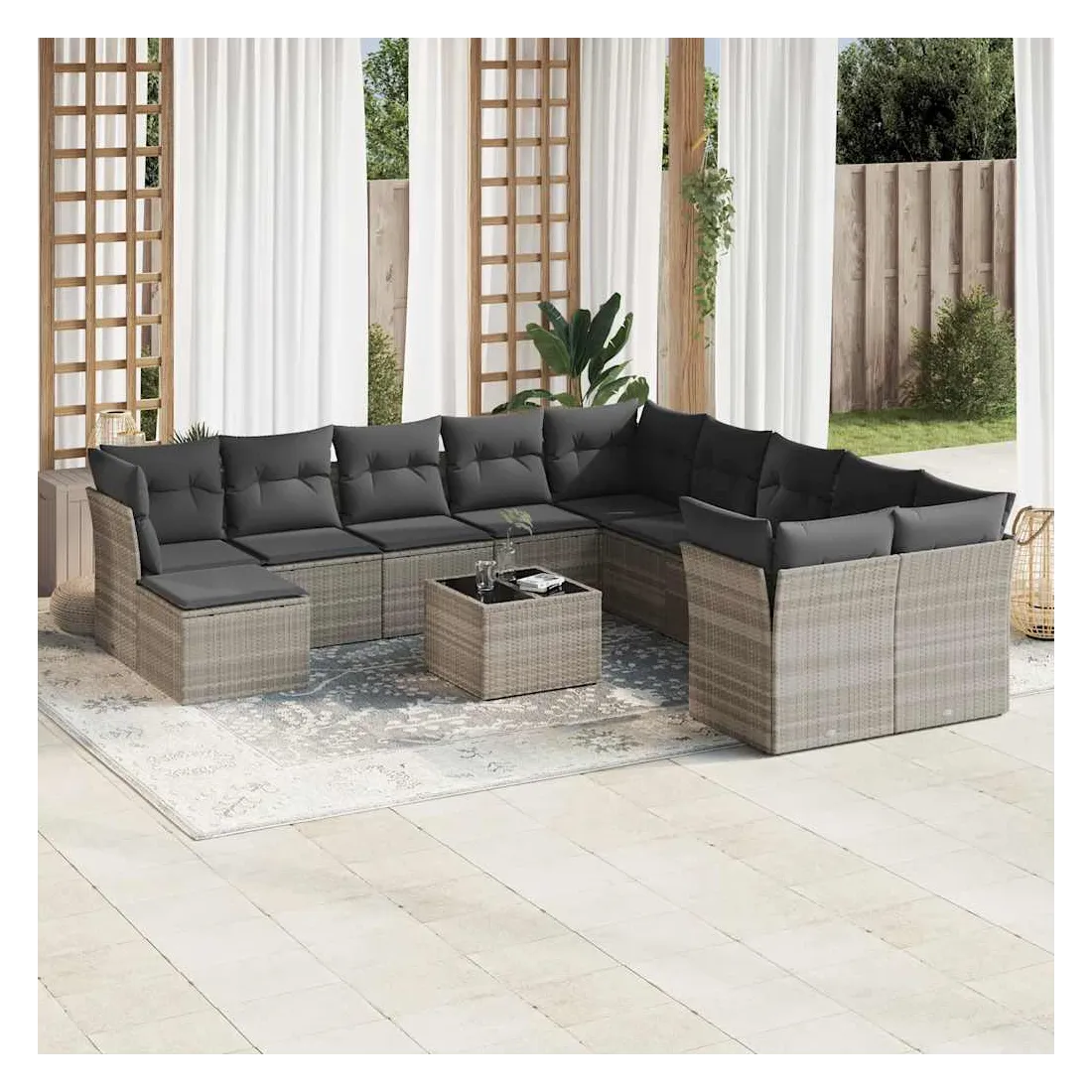 Cet ensemble de canapés de jardin est le complément parfait de votre arrière-cour, terrasse ou patio, offrant un espace confortable et accueillant pour discuter avec la famille et les amis ou simplement se détendre et profiter de l'extérieur. Matériau durable : la résine tressée, également connue sous le nom de poly rotin, est un matériau synthétique solide et nécessitant peu d'entretien qui ressemble au rotin naturel. Il est léger, facile à nettoyer et couramment utilisé pour les meubles d'extérieur en raison de sa durabilité et de ses propriétés de résistance aux intempéries.Expérience d'assise confortable : ce mobilier d'extérieur, doté de coussins épais, offre une expérience d'assise confortable.Housse amovible et lavable : ces coussins de siège sont dotés de housses amovibles pour un lavage et un entretien faciles.Dessus en verre : le dessus de la table d'extérieur est fabriqué en verre trempé solide et durable, ce qui le rend facile à nettoyer avec un chiffon humide et ajoute une touche d'élégance à votre espace extérieur.Conception modulaire : cet ensemble de meubles d'extérieur a une conception modulaire, ce qui le rend complètement flexible et facile à déplacer, afin que vous puissiez créer un agencement de meubles d'extérieur personnalisé. Bon à savoir :Pour que vos meubles d'extérieur restent beaux, nous vous recommandons de les protéger avec une housse imperméable.