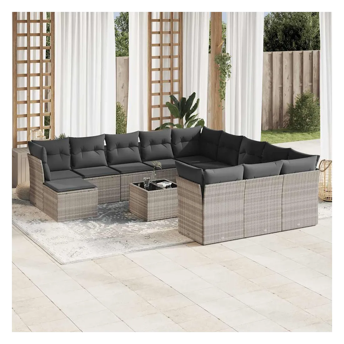 Cet ensemble de canapés de jardin est le complément parfait de votre arrière-cour, terrasse ou patio, offrant un espace confortable et accueillant pour discuter avec la famille et les amis ou simplement se détendre et profiter de l'extérieur. Matériau durable : la résine tressée, également connue sous le nom de poly rotin, est un matériau synthétique solide et nécessitant peu d'entretien qui ressemble au rotin naturel. Il est léger, facile à nettoyer et couramment utilisé pour les meubles d'extérieur en raison de sa durabilité et de ses propriétés de résistance aux intempéries.Expérience d'assise confortable : ce mobilier d'extérieur, doté de coussins épais, offre une expérience d'assise confortable.Housse amovible et lavable : ces coussins de siège sont dotés de housses amovibles pour un lavage et un entretien faciles.Dessus en verre : le dessus de la table d'extérieur est fabriqué en verre trempé solide et durable, ce qui le rend facile à nettoyer avec un chiffon humide et ajoute une touche d'élégance à votre espace extérieur.Conception modulaire : cet ensemble de meubles d'extérieur a une conception modulaire, ce qui le rend complètement flexible et facile à déplacer, afin que vous puissiez créer un agencement de meubles d'extérieur personnalisé. Bon à savoir :Pour que vos meubles d'extérieur restent beaux, nous vous recommandons de les protéger avec une housse imperméable.