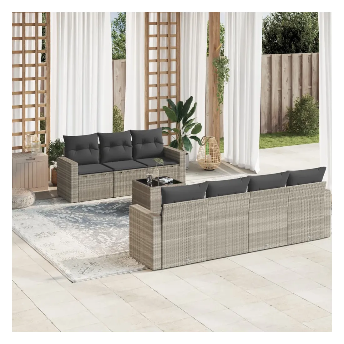 Cet ensemble de canapés de jardin est le complément parfait de votre arrière-cour, terrasse ou patio, offrant un espace confortable et accueillant pour discuter avec la famille et les amis ou simplement se détendre et profiter de l'extérieur. Matériau durable : la résine tressée, également connue sous le nom de poly rotin, est un matériau synthétique solide et nécessitant peu d'entretien qui ressemble au rotin naturel. Il est léger, facile à nettoyer et couramment utilisé pour les meubles d'extérieur en raison de sa durabilité et de ses propriétés de résistance aux intempéries.Expérience d'assise confortable : ce mobilier d'extérieur, doté de coussins épais, offre une expérience d'assise confortable. Les larges accoudoirs offrent également un endroit pratique pour garder votre téléphone portable, vos tasses ou d'autres petits objets à portée de main.Housse amovible et lavable : ces coussins de siège sont dotés de housses amovibles pour un lavage et un entretien faciles.Dessus en verre : le dessus de la table d'extérieur est fabriqué en verre trempé solide et durable, ce qui le rend facile à nettoyer avec un chiffon humide et ajoute une touche d'élégance à votre espace extérieur.Conception modulaire : cet ensemble de meubles d'extérieur a une conception modulaire, ce qui le rend complètement flexible et facile à déplacer, afin que vous puissiez créer un agencement de meubles d'extérieur personnalisé. Bon à savoir :Pour que vos meubles d'extérieur restent beaux, nous vous recommandons de les protéger avec une housse imperméable.