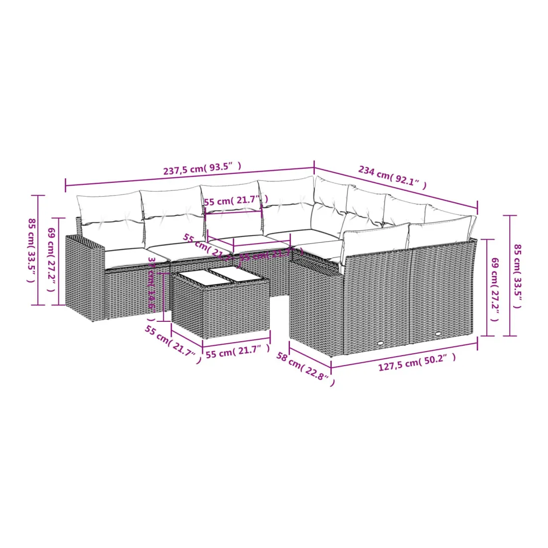 - Dimensions du coussin de dossier : 55 x 45 x 13 cm (L x l x é)