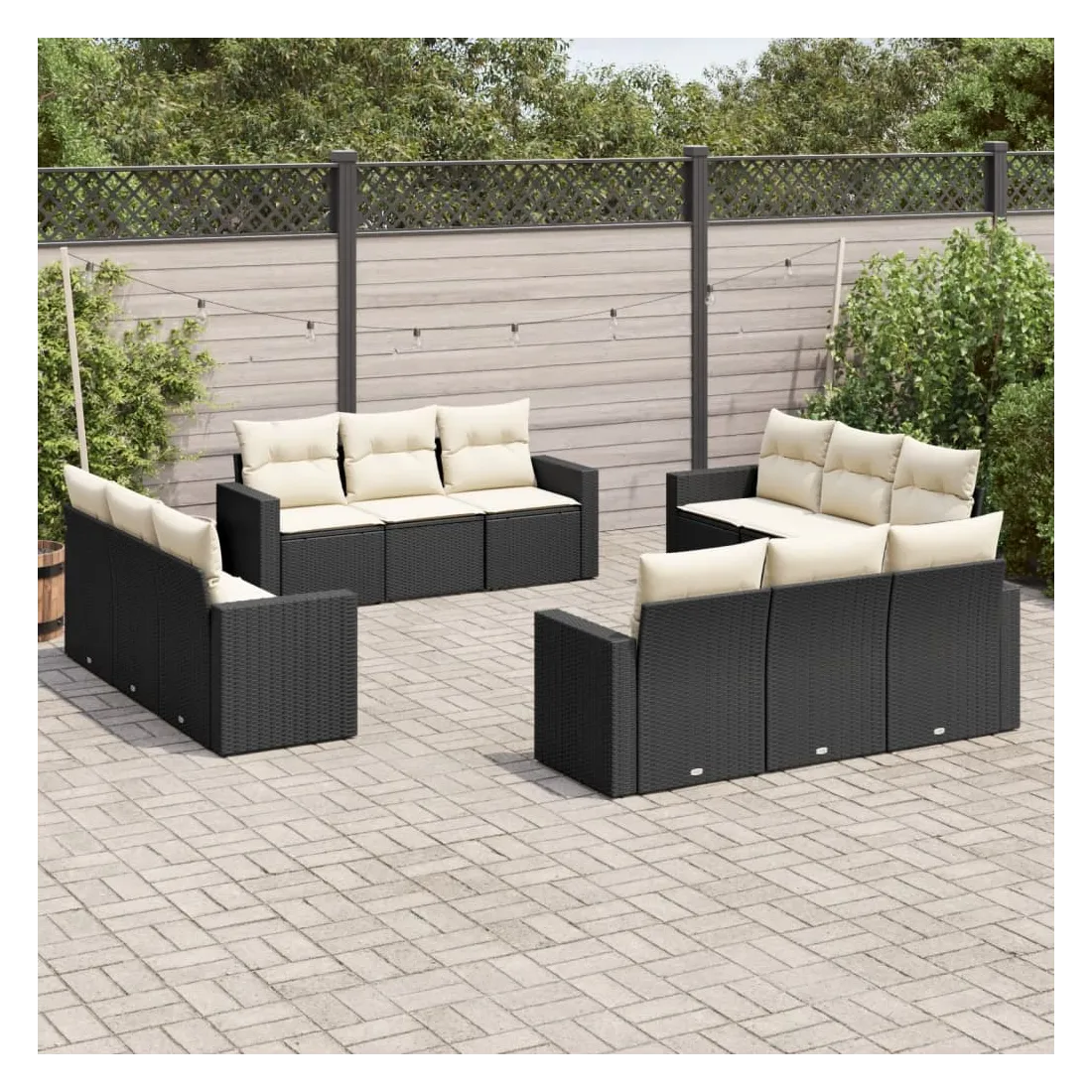 Cet ensemble de canapés de jardin est le complément parfait de votre arrière-cour, terrasse ou patio, offrant un espace confortable et accueillant pour discuter avec la famille et les amis ou simplement se détendre et profiter de l'extérieur. Matériau durable : la résine tressée, également connue sous le nom de poly rotin, est un matériau synthétique solide et nécessitant peu d'entretien qui ressemble au rotin naturel. Il est léger, facile à nettoyer et couramment utilisé pour les meubles d'extérieur en raison de sa durabilité et de ses propriétés de résistance aux intempéries.Expérience d'assise confortable : ce mobilier d'extérieur, doté de coussins épais, offre une expérience d'assise confortable. Les larges accoudoirs offrent également un endroit pratique pour garder votre téléphone portable, vos tasses ou d'autres petits objets à portée de main.Housse amovible et lavable : ces coussins de siège sont dotés de housses amovibles pour un lavage et un entretien faciles.Conception modulaire : cet ensemble de meubles d'extérieur a une conception modulaire, ce qui le rend complètement flexible et facile à déplacer, afin que vous puissiez créer un agencement de meubles d'extérieur personnalisé. Bon à savoir :Pour que vos meubles d'extérieur restent beaux, nous vous recommandons de les protéger avec une housse imperméable.