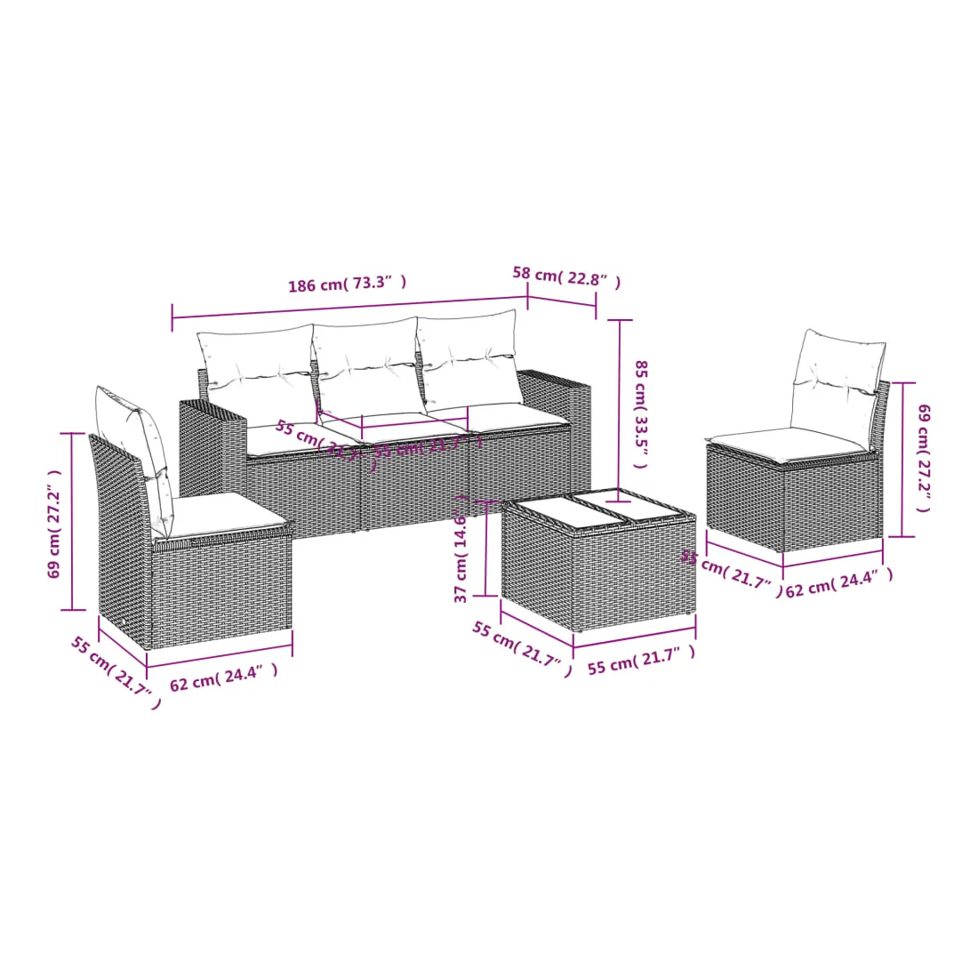 - Dimensions : 55 x 55 x 37 cm (l x P x H)
