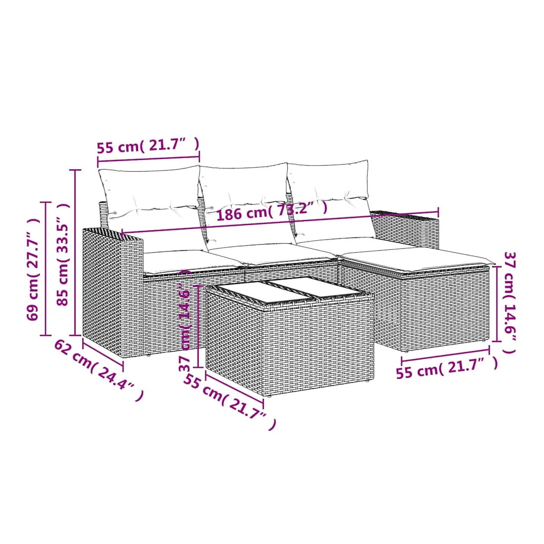 - Dimensions : 55 x 55 x 37 cm (l x P x H)