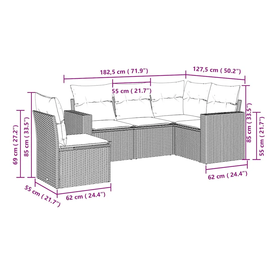 Salon de jardin 5 pcs avec coussins gris clair résine tressée