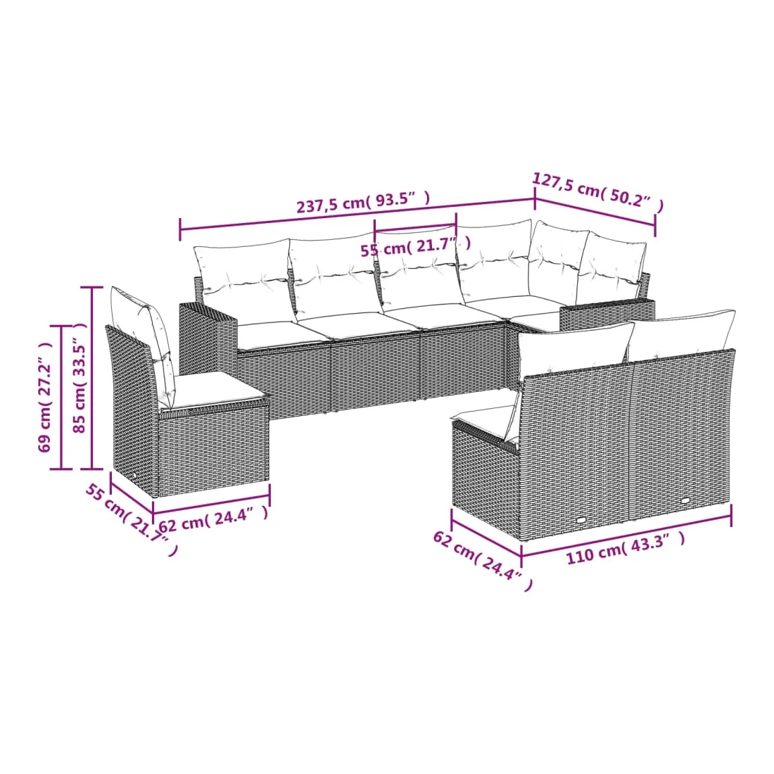 Cet ensemble de canapés de jardin est le complément parfait de votre arrière-cour, terrasse ou patio, offrant un espace confortable et accueillant pour discuter avec la famille et les amis ou simplement se détendre et profiter de l'extérieur. Matériau durable : la résine tressée, également connue sous le nom de poly rotin, est un matériau synthétique solide et nécessitant peu d'entretien qui ressemble au rotin naturel. Il est léger, facile à nettoyer et couramment utilisé pour les meubles d'extérieur en raison de sa durabilité et de ses propriétés de résistance aux intempéries.Expérience d'assise confortable : ce mobilier d'extérieur, doté de coussins épais, offre une expérience d'assise confortable. Les larges accoudoirs offrent également un endroit pratique pour garder votre téléphone portable, vos tasses ou d'autres petits objets à portée de main.Housse amovible et lavable : ces coussins de siège sont dotés de housses amovibles pour un lavage et un entretien faciles.Conception modulaire : cet ensemble de meubles d'extérieur a une conception modulaire, ce qui le rend complètement flexible et facile à déplacer, afin que vous puissiez créer un agencement de meubles d'extérieur personnalisé. Bon à savoir :Pour que vos meubles d'extérieur restent beaux, nous vous recommandons de les protéger avec une housse imperméable.