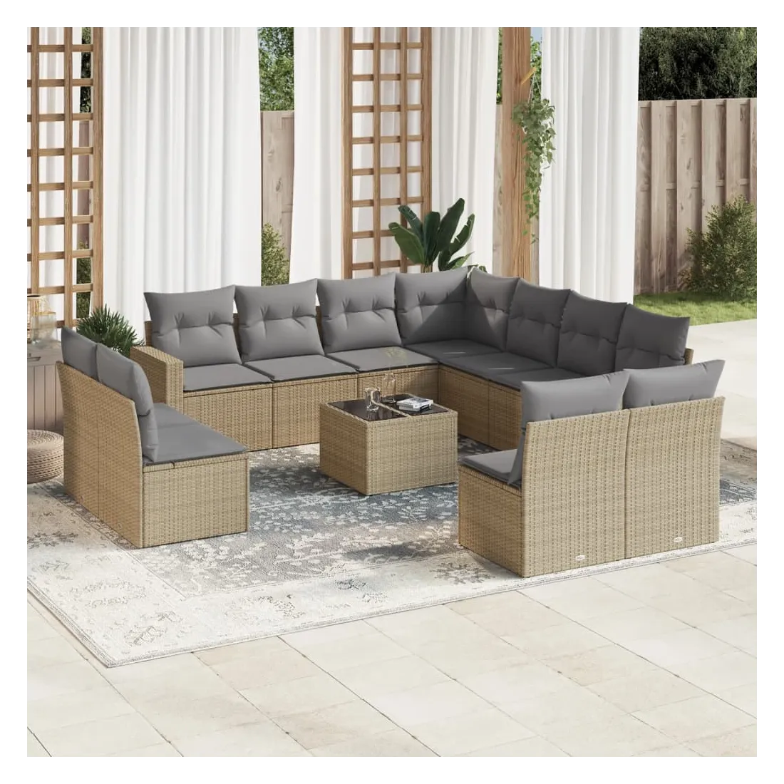 Cet ensemble de canapés de jardin est le complément parfait de votre arrière-cour, terrasse ou patio, offrant un espace confortable et accueillant pour discuter avec la famille et les amis ou simplement se détendre et profiter de l'extérieur. Matériau durable : la résine tressée, également connue sous le nom de poly rotin, est un matériau synthétique solide et nécessitant peu d'entretien qui ressemble au rotin naturel. Il est léger, facile à nettoyer et couramment utilisé pour les meubles d'extérieur en raison de sa durabilité et de ses propriétés de résistance aux intempéries.Expérience d'assise confortable : ce mobilier d'extérieur, doté de coussins épais, offre une expérience d'assise confortable. Les larges accoudoirs offrent également un endroit pratique pour garder votre téléphone portable, vos tasses ou d'autres petits objets à portée de main.Housse amovible et lavable : ces coussins de siège sont dotés de housses amovibles pour un lavage et un entretien faciles.Dessus en verre : le dessus de la table d'extérieur est fabriqué en verre trempé solide et durable, ce qui le rend facile à nettoyer avec un chiffon humide et ajoute une touche d'élégance à votre espace extérieur.Conception modulaire : cet ensemble de meubles d'extérieur a une conception modulaire, ce qui le rend complètement flexible et facile à déplacer, afin que vous puissiez créer un agencement de meubles d'extérieur personnalisé. Bon à savoir :Pour que vos meubles d'extérieur restent beaux, nous vous recommandons de les protéger avec une housse imperméable.