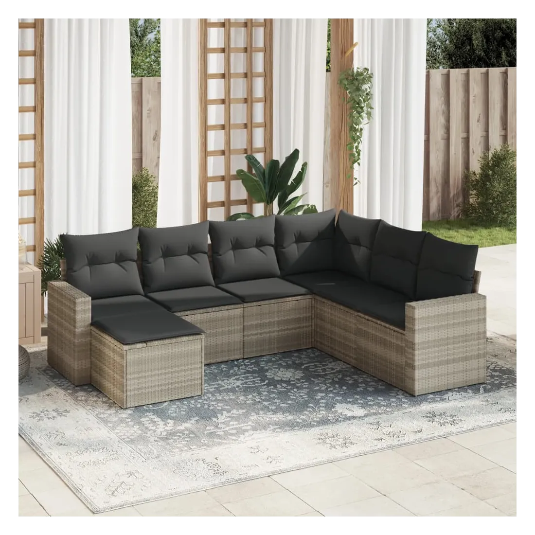 Cet ensemble de canapés de jardin est le complément parfait de votre arrière-cour, terrasse ou patio, offrant un espace confortable et accueillant pour discuter avec la famille et les amis ou simplement se détendre et profiter de l'extérieur. Matériau durable : la résine tressée, également connue sous le nom de poly rotin, est un matériau synthétique solide et nécessitant peu d'entretien qui ressemble au rotin naturel. Il est léger, facile à nettoyer et couramment utilisé pour les meubles d'extérieur en raison de sa durabilité et de ses propriétés de résistance aux intempéries.Expérience d'assise confortable : ce mobilier d'extérieur, doté de coussins épais, offre une expérience d'assise confortable. Les larges accoudoirs offrent également un endroit pratique pour garder votre téléphone portable, vos tasses ou d'autres petits objets à portée de main.Housse amovible et lavable : ces coussins de siège sont dotés de housses amovibles pour un lavage et un entretien faciles.Conception modulaire : cet ensemble de meubles d'extérieur a une conception modulaire, ce qui le rend complètement flexible et facile à déplacer, afin que vous puissiez créer un agencement de meubles d'extérieur personnalisé. Bon à savoir :Pour que vos meubles d'extérieur restent beaux, nous vous recommandons de les protéger avec une housse imperméable.